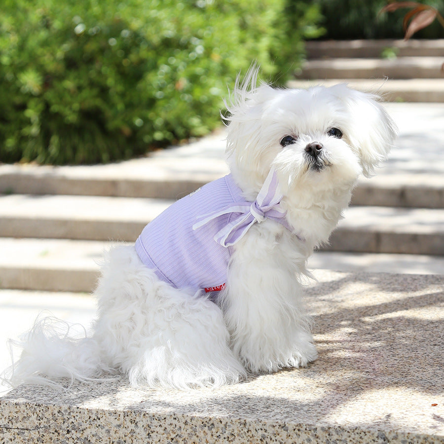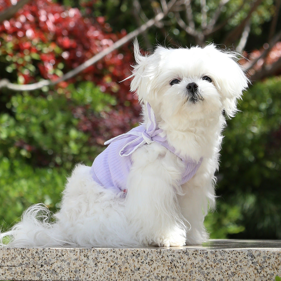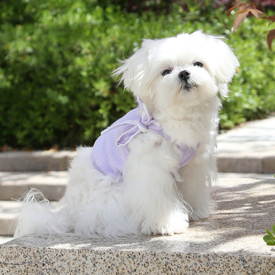 This purple dog camisole is designed for spring and summer wear, offering a lightweight and breathable outfit for your dog. Made from soft fabric, it helps keep your dog cool and comfortable during warm weather. The sleeveless camisole design allows easy movement without restricting activity, making it perfect for daily wear, walks, or lounging at home. Stylish and comfortable, this dog camisole adds a cute seasonal look while ensuring your dog stays comfortable all day.