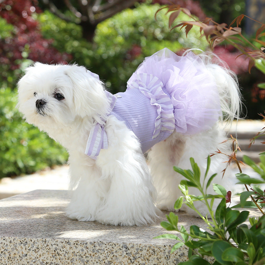 This purple dog dress is designed for spring and summer wear, providing a lightweight and comfortable outfit for your dog. Made from soft and breathable fabric, it helps keep your dog cool and comfortable during warm weather. The stylish dress design adds a cute and charming look, making it perfect for daily wear, outings, or special occasions. Easy to put on and comfortable to wear, this dog dress combines fashion and comfort for your dog’s everyday style.