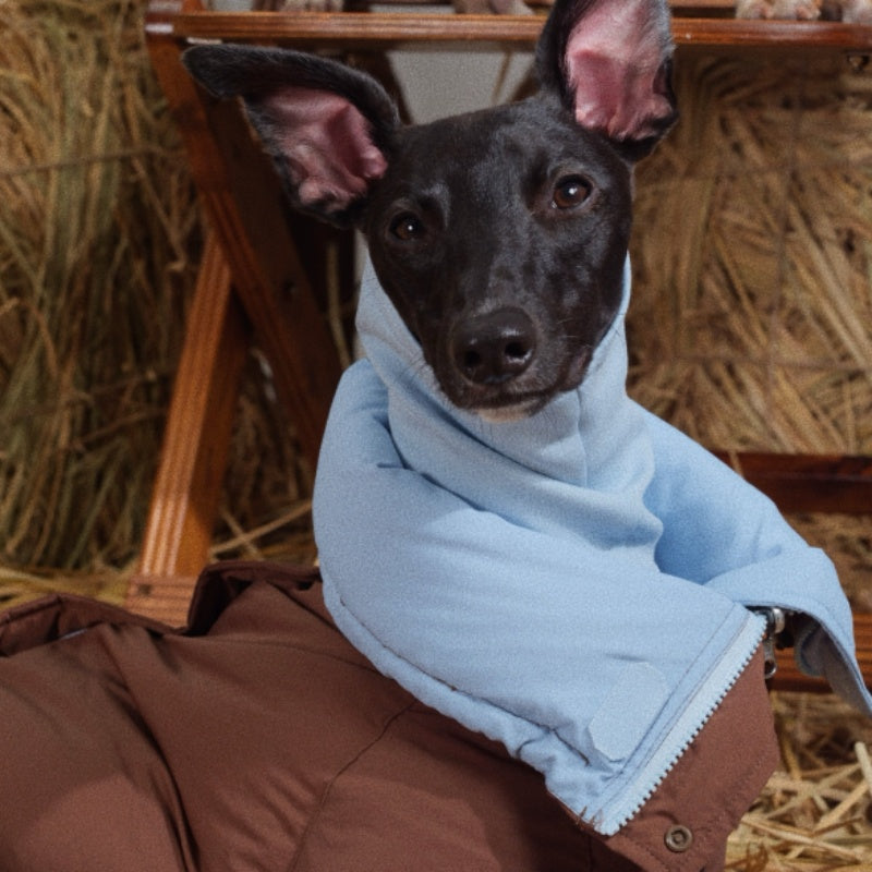 This reversible waterproof down jacket offers exceptional warmth and protection for Italian Greyhounds. Filled with 90% white duck down, it provides superior insulation while remaining lightweight. Designed with full four-leg coverage, it ensures comfort and freedom of movement even in harsh weather. The waterproof material keeps your pet dry, making it ideal for rainy or snowy outings. Its dual-sided design allows versatile styling and extended wear, combining function and fashion for the discerning dog owner.