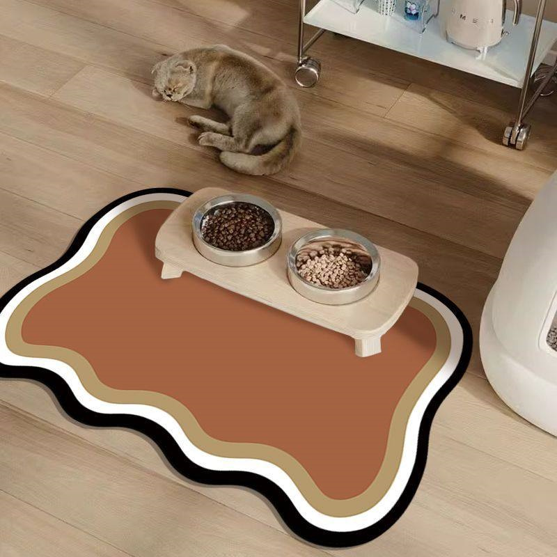 This uniquely shaped absorbent pet feeding mat is designed to keep your cat or dog’s feeding area clean and dry. Made from highly absorbent materials, it quickly soaks up water and helps prevent leaks from reaching your floors. The non-slip backing keeps bowls securely in place, reducing movement and spills during meals. Easy to clean and maintain, this practical mat helps control mess while adding a fun and functional touch to your pet’s feeding space.