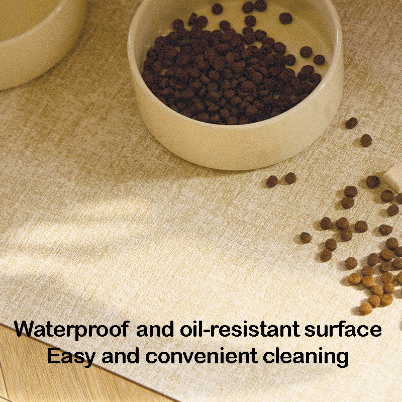 This waterproof pet feeding mat is designed for both cats and dogs to keep feeding areas clean and organized. The anti slip base helps keep bowls securely in place, reducing movement and preventing spills during mealtime. Made with waterproof material, it protects floors from water splashes and food mess while making cleanup quick and easy. The wood grain pattern adds a natural and stylish look that blends well with home decor. Durable and practical, this feeding mat is suitable for daily use and helps create a tidy feeding space for your pet.