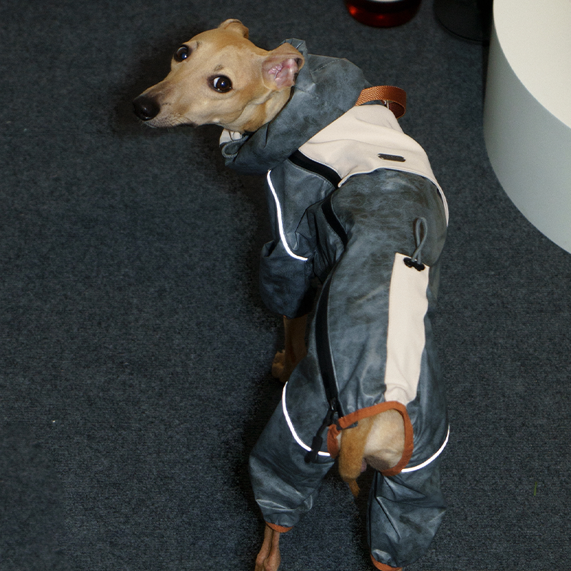 This waterproof and windproof four leg raincoat is designed for Italian Greyhounds and Whippets, providing full coverage and protection during outdoor activities. The lightweight, durable material keeps your dog dry and comfortable while shielding against wind and rain. The four leg design allows natural movement, ensuring your dog can walk, run, and play freely. Perfect for outdoor adventures, walks, or travel, this stylish raincoat combines practicality and protection for sighthounds in all weather conditions.