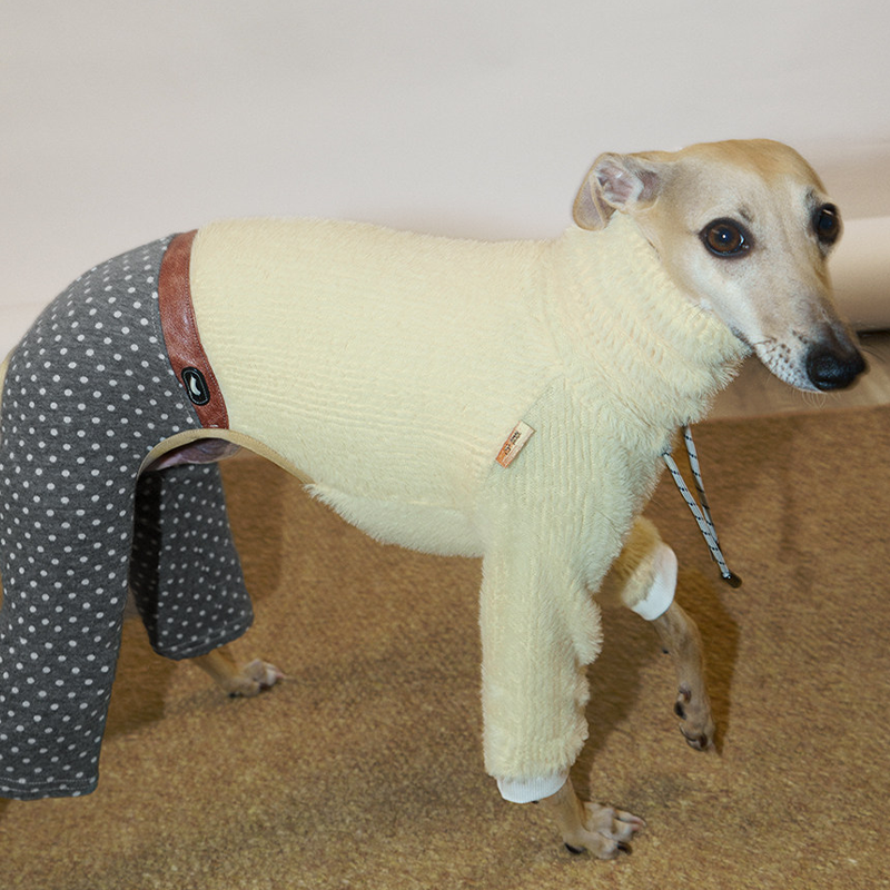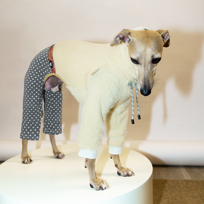 This plush warm four leg onesies is designed for Italian Greyhound and Whippet dogs to stay cozy during autumn and winter. Made with soft and thick plush fabric, it provides full body coverage, gentle warmth, and a comfortable fit, making it ideal for indoor lounging and sleep. This design does not include a leash opening, offering a smooth and uninterrupted fit for resting and relaxation.