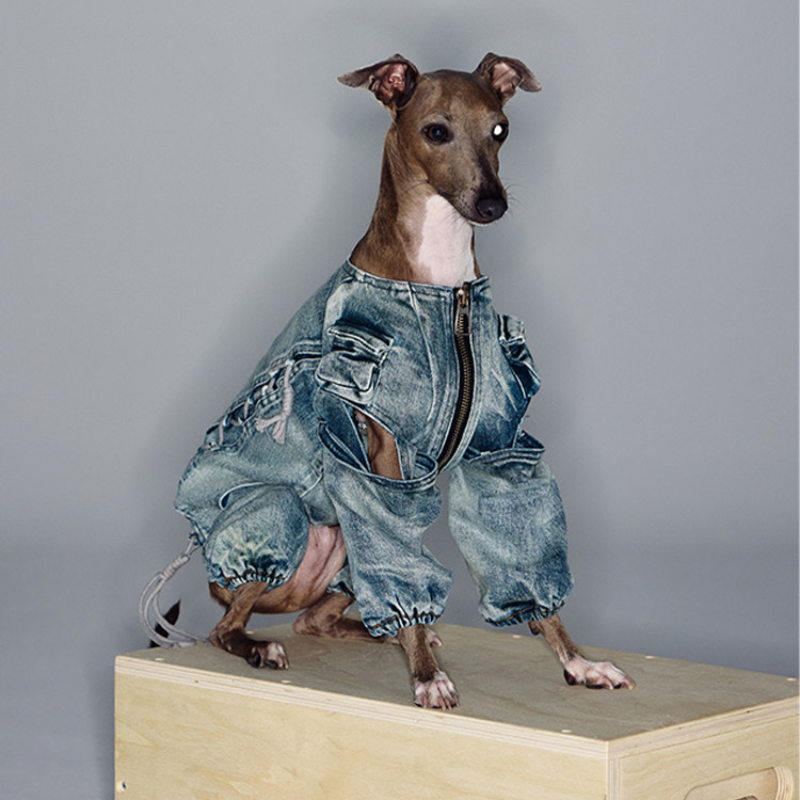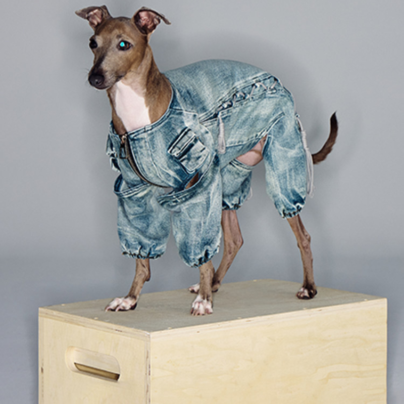 Retro Denim Four Leg Coat with Pockets Italian Greyhound Whippet Dogs
