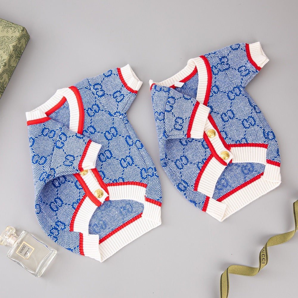 V-neck Button Knitting Sweater Dog Clothes G Sky Blue