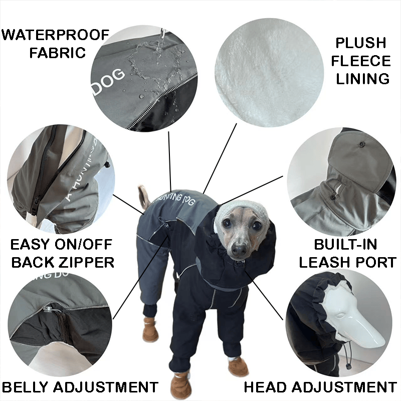 Designed specifically for Italian Greyhounds and Whippets, this winter onesie offers reliable waterproof and windproof protection. Its tailored fit ensures maximum comfort and freedom of movement while shielding your pet from cold and wet weather. Ideal for outdoor activities in harsh conditions, this garment keeps your dog warm and dry without compromising style or mobility.