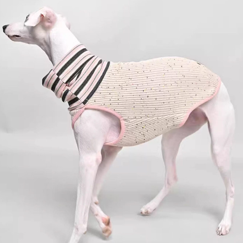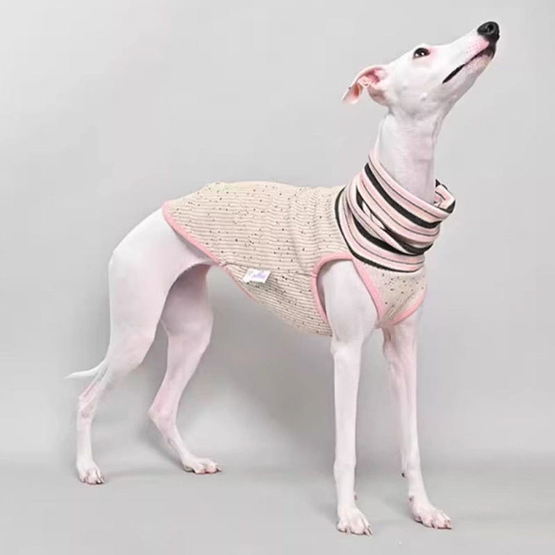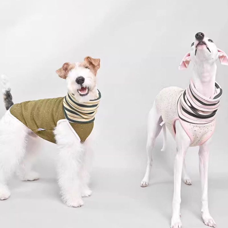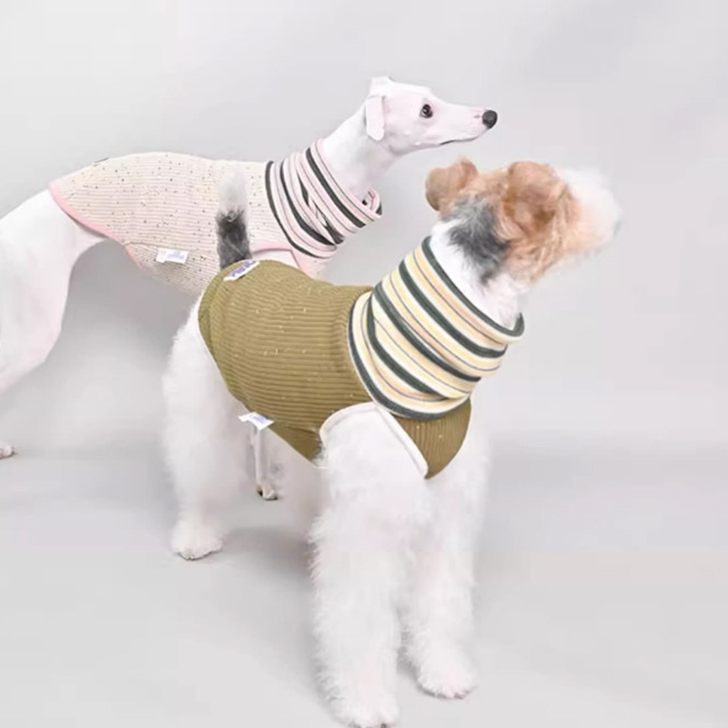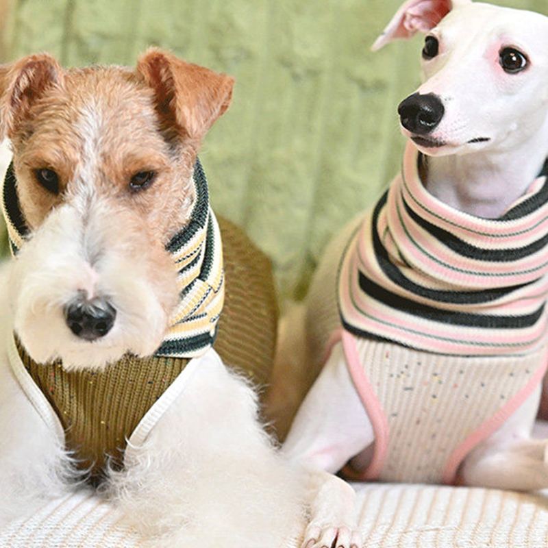 This two tone striped knit fleece two leg sweater is designed for Italian Greyhound dogs to stay warm and stylish during autumn and winter. Made with soft and cozy knitted fleece, it offers gentle warmth, comfortable stretch, and easy movement, making it ideal for daily wear, lounging, and cool weather outings.
