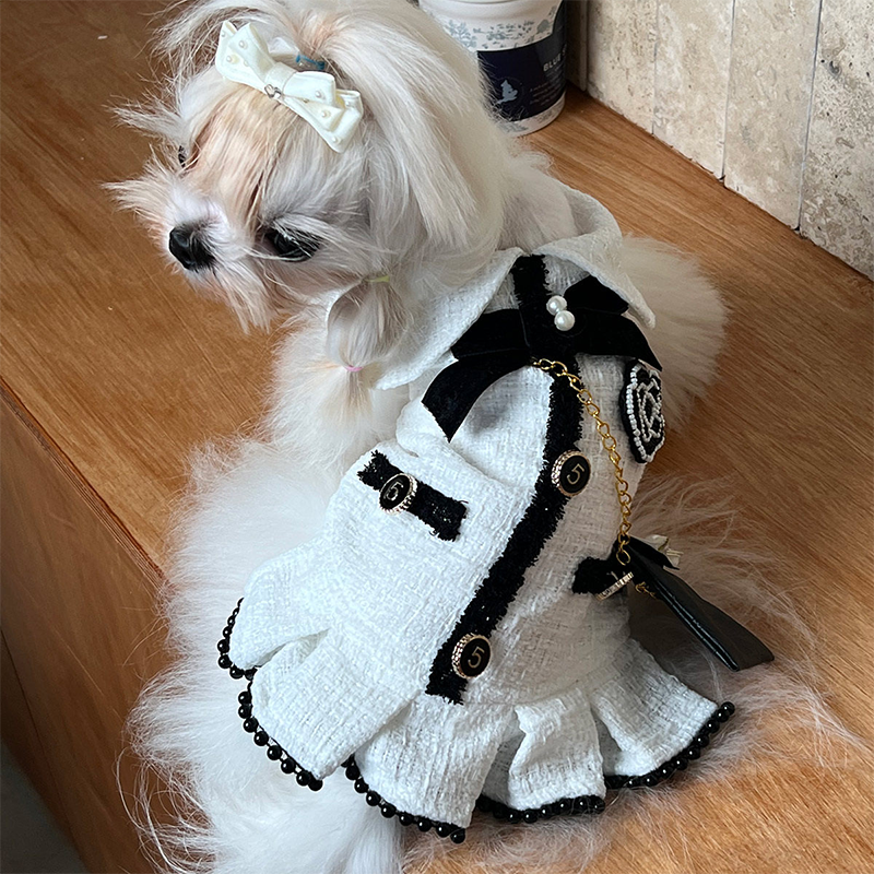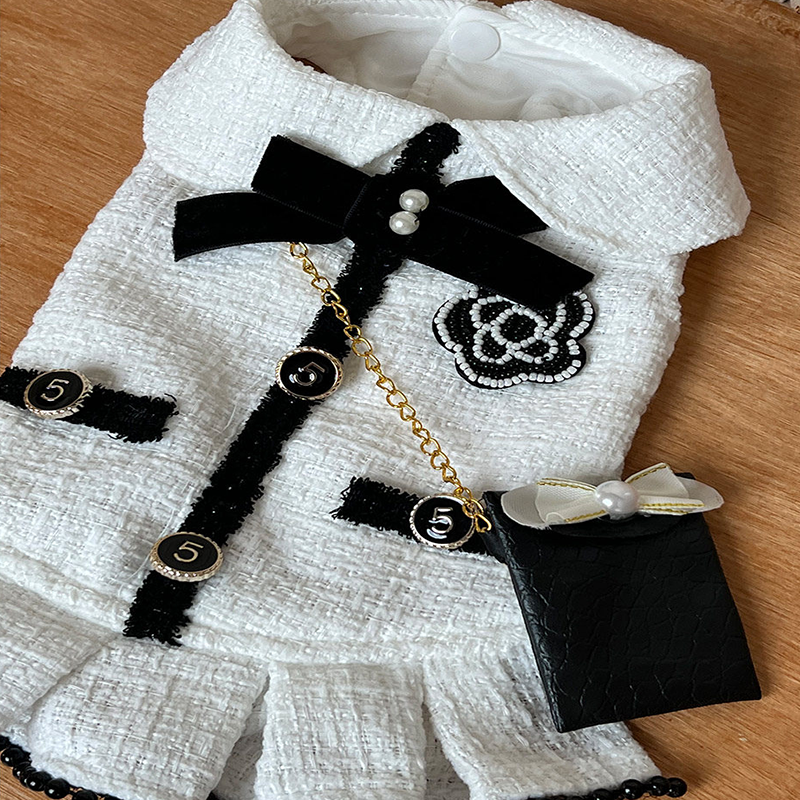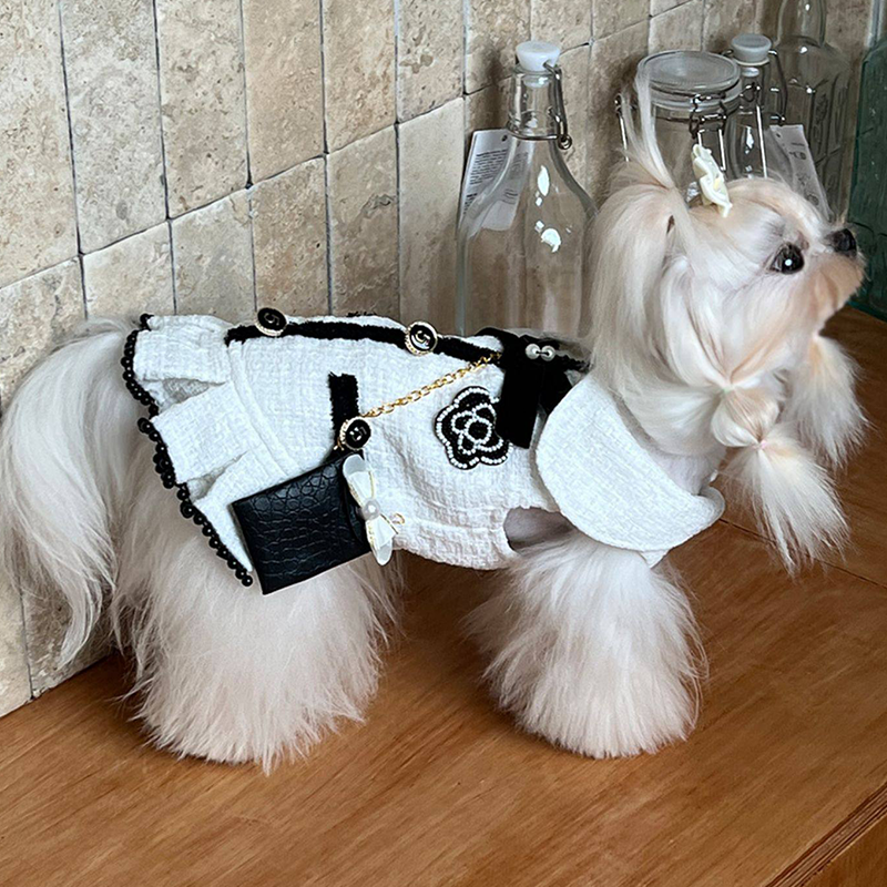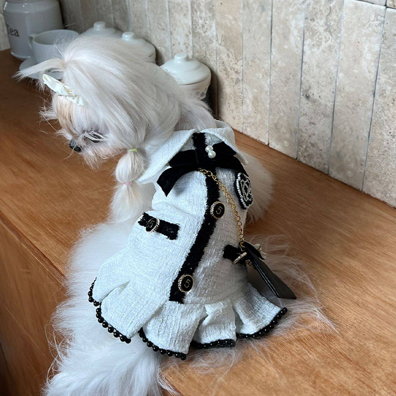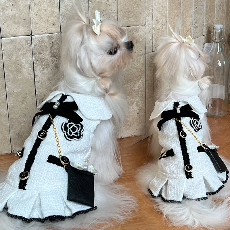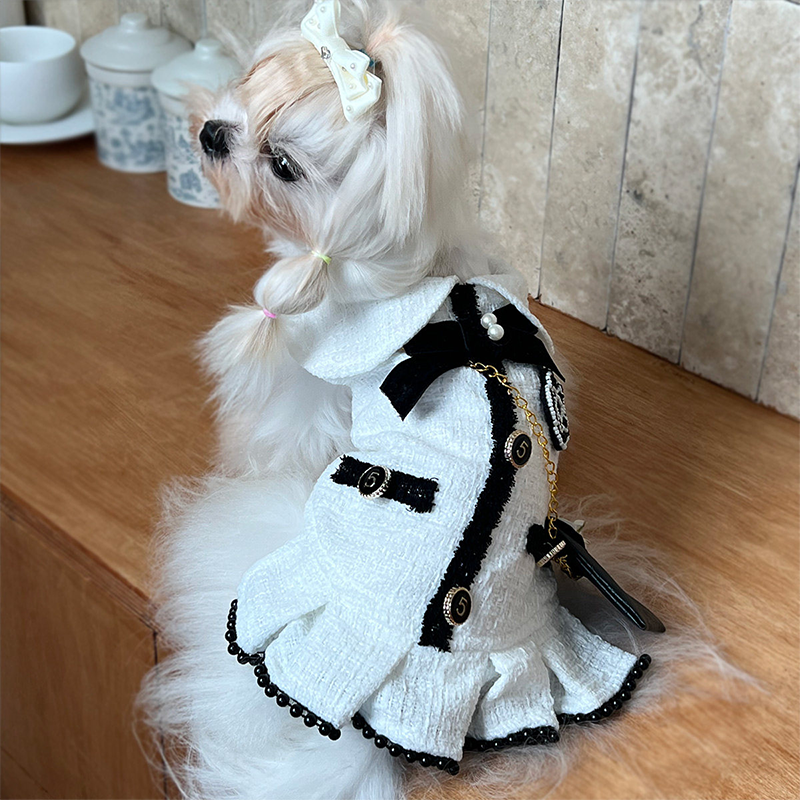 This couture bow dresses is designed for small medium dogs who love elegant and refined styles. Inspired by classic couture aesthetics, it features a delicate bow detail and a dress style silhouette that adds a formal and charming look. The comfortable structure allows easy movement while providing light seasonal warmth, making it ideal for celebrations special occasions and stylish daily wear.
