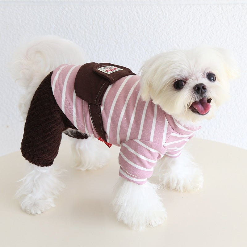 Keep your small to medium dog cozy and stylish with this innovative four-leg onesie designed for ultimate comfort. The soft, warm fabric provides excellent insulation during cooler months, while the thoughtful four-leg design ensures complete coverage without restricting movement. A convenient crossbody bag attachment allows you to carry essentials while keeping your hands free during walks. Perfect for pets who need extra warmth or protection, this onesie combines functionality with fashion for the discerning pet owner.