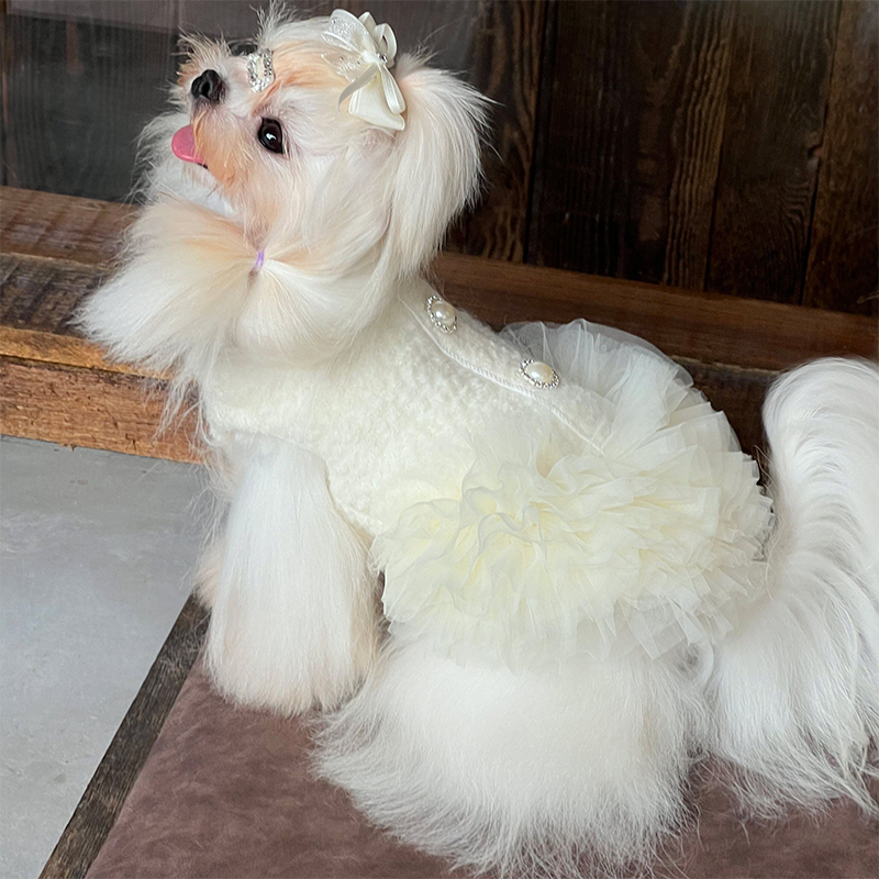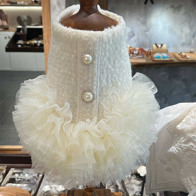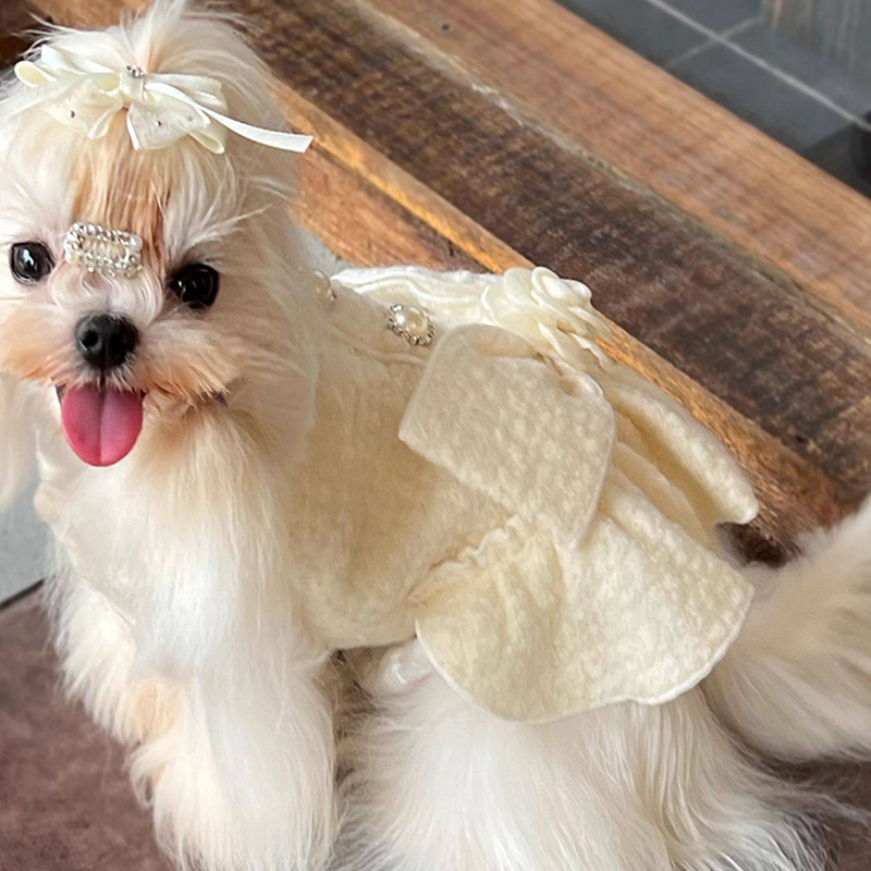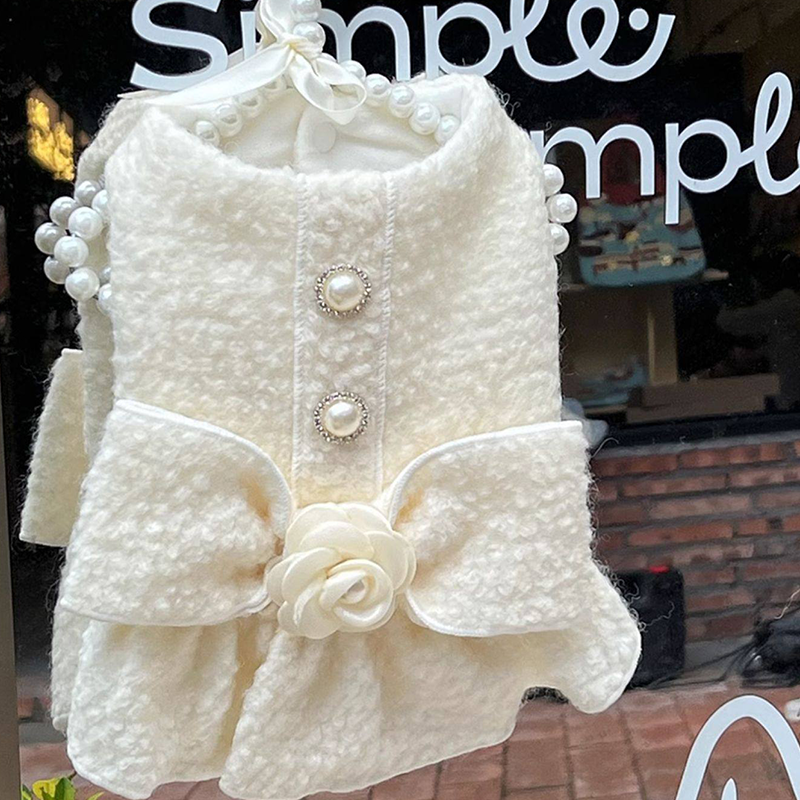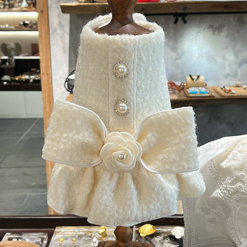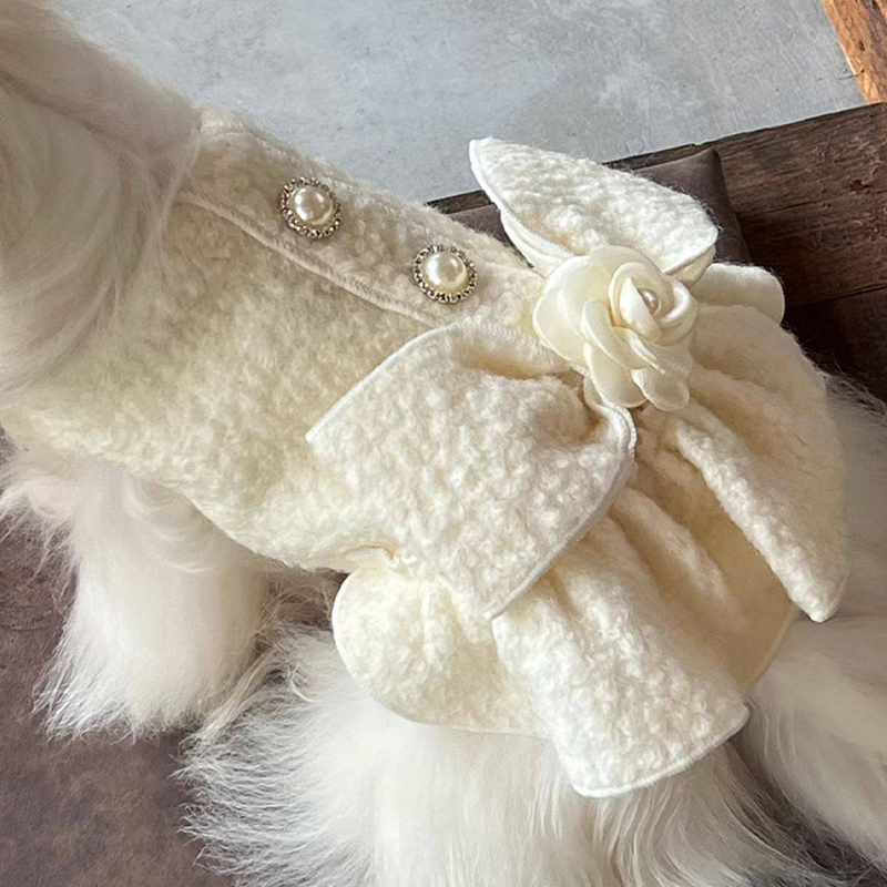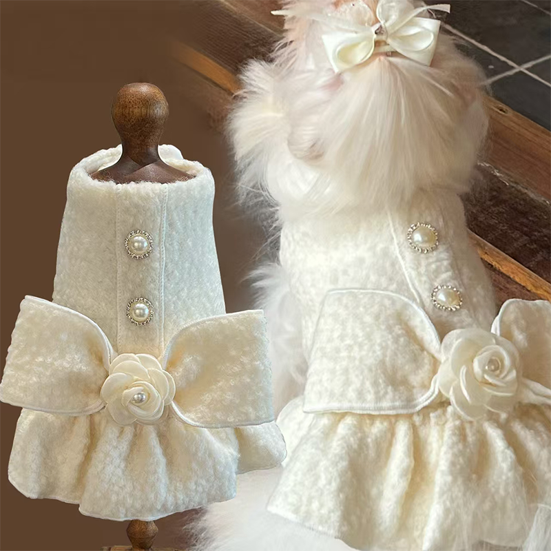 This wool blend couture dresses is designed for small medium dogs who need warmth with an elegant and refined look during autumn and winter. Crafted from premium wool blend fabric, it offers soft insulation while maintaining a structured and graceful silhouette. The dress style design adds a timeless couture feel, making it perfect for festive events special occasions and stylish everyday wear.