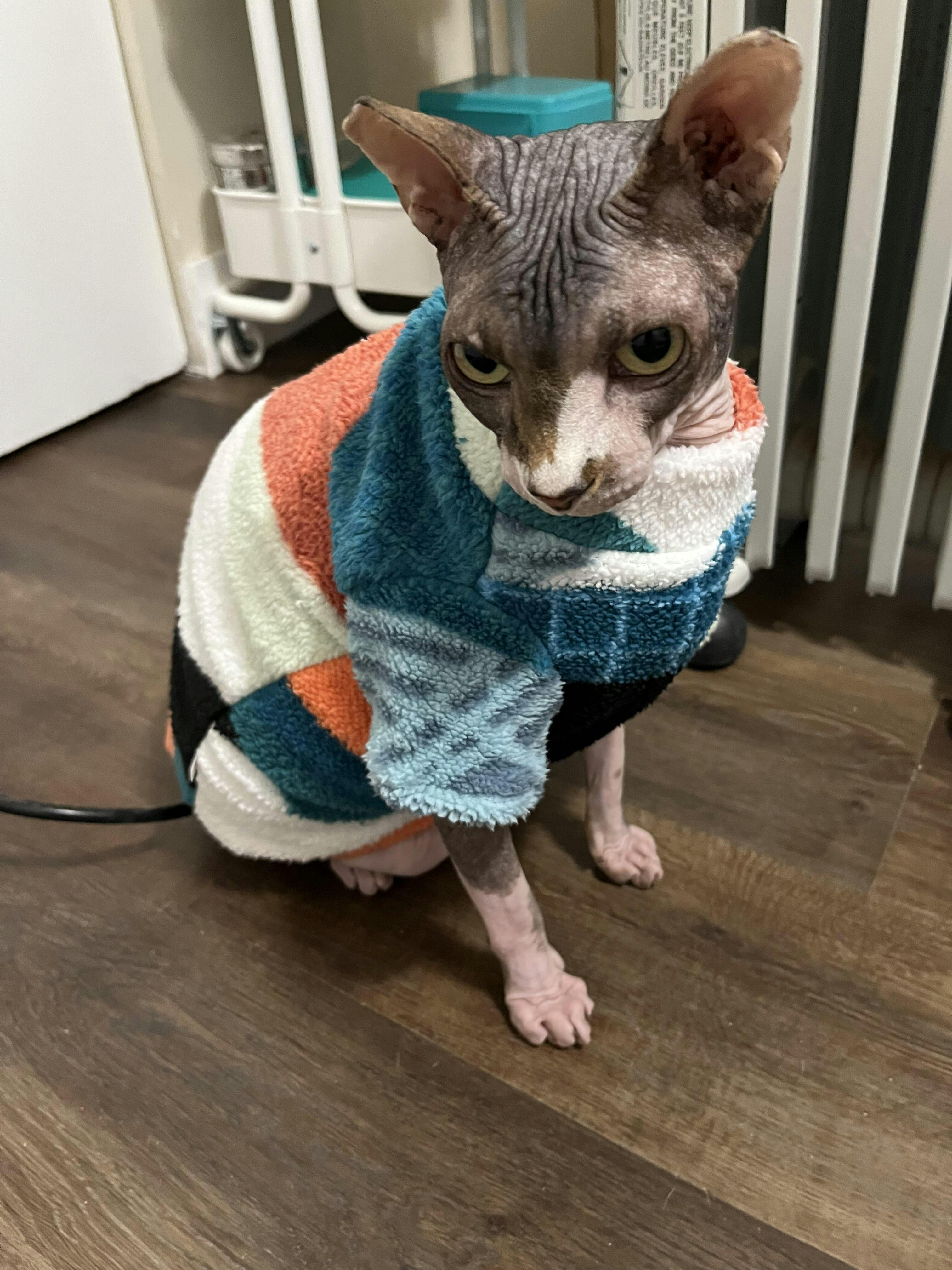 Colorblock Cat Shirt Devon Rex Clothes Warm Thick Winter Outfit