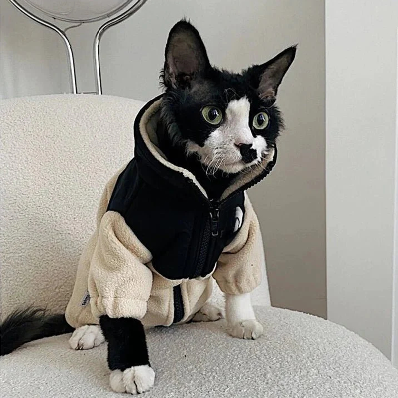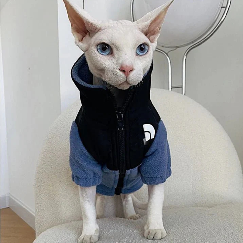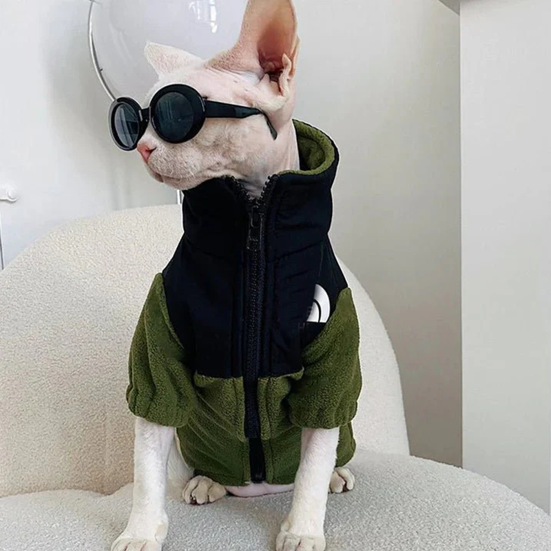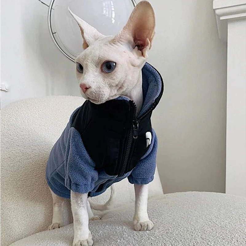 This zip jacket Hairless Sphynx cat clothes is perfect for keeping your furry friend warm and cozy. Made of plush fleece, the lightweight yet snug-fitting outfit allows for easy movement while providing optimal warmth. The design is perfect for small to medium-sized cats.