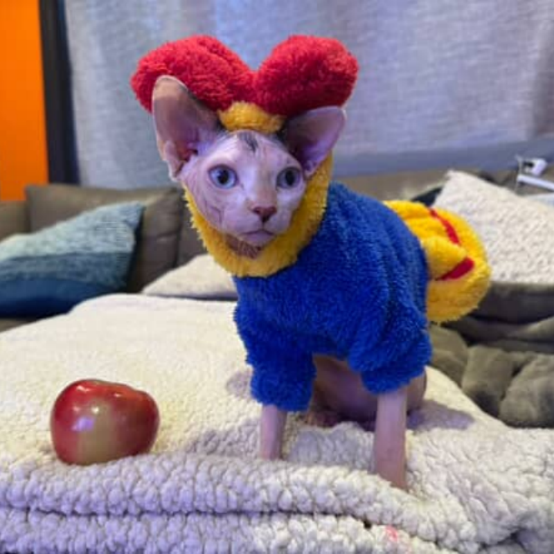 This Snow White dress hoodie Sphynx cat clothes is perfect for Fall, Autumn, and Winter. It features a plush fabric design for extra comfort, bright colors, and an open bottom to provide full range of motion. The hoodie also helps protect your cat's abdomen from the cold. Soft and breathable fabric keeps your cat cozy without over-heating.