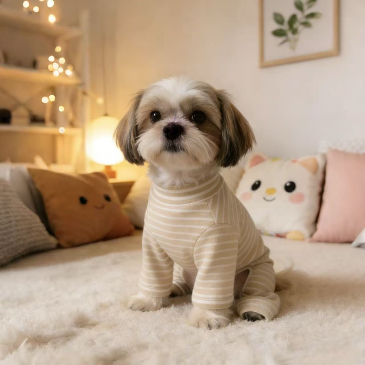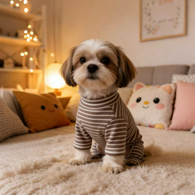 This thick plush lined base layer onesies is designed for toy dogs to stay warm and comfortable during winter. Made with soft and stretchy fabric, it features added plush lining for extra insulation while maintaining a snug fit, making it ideal for layering under coats or wearing alone for daily warmth.The clean back design features no leash opening.