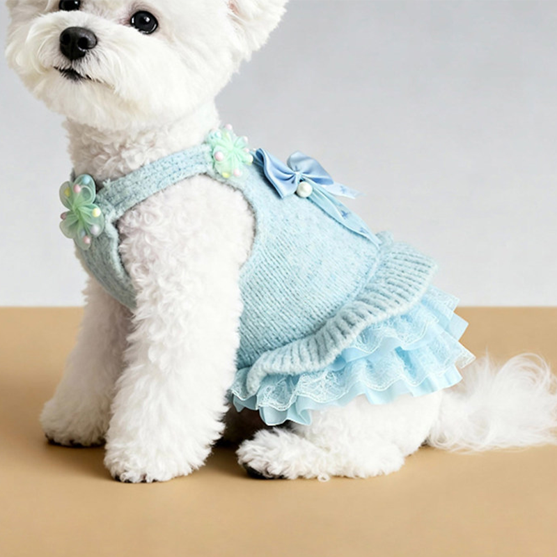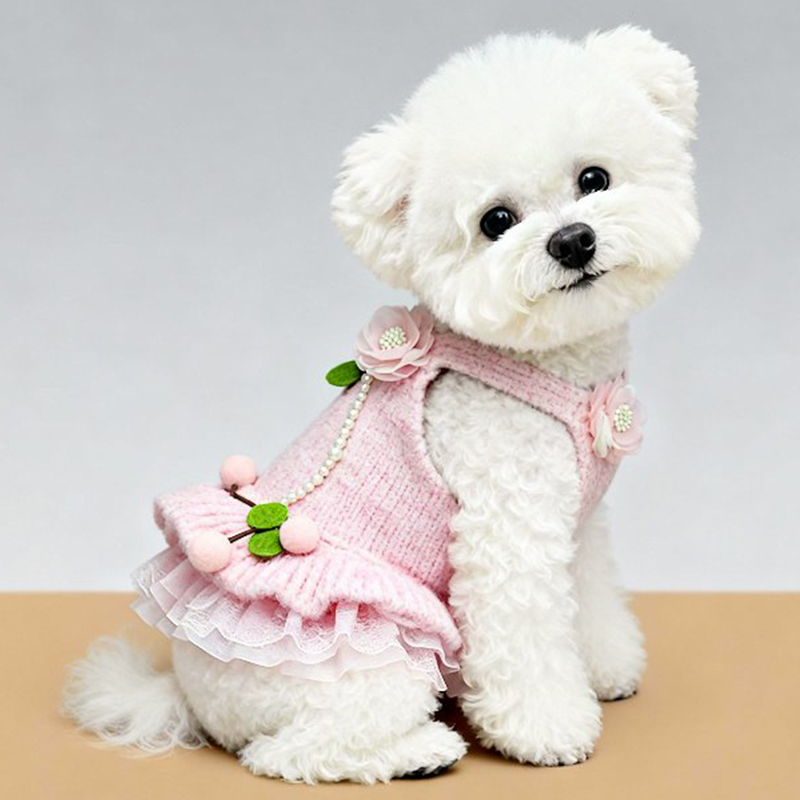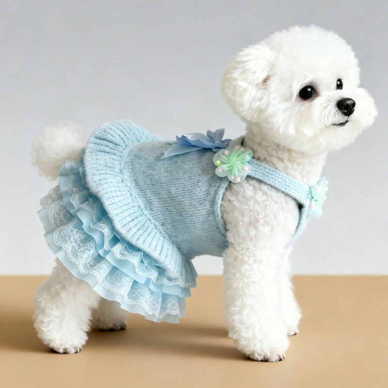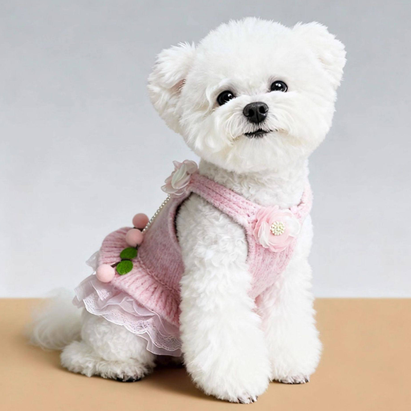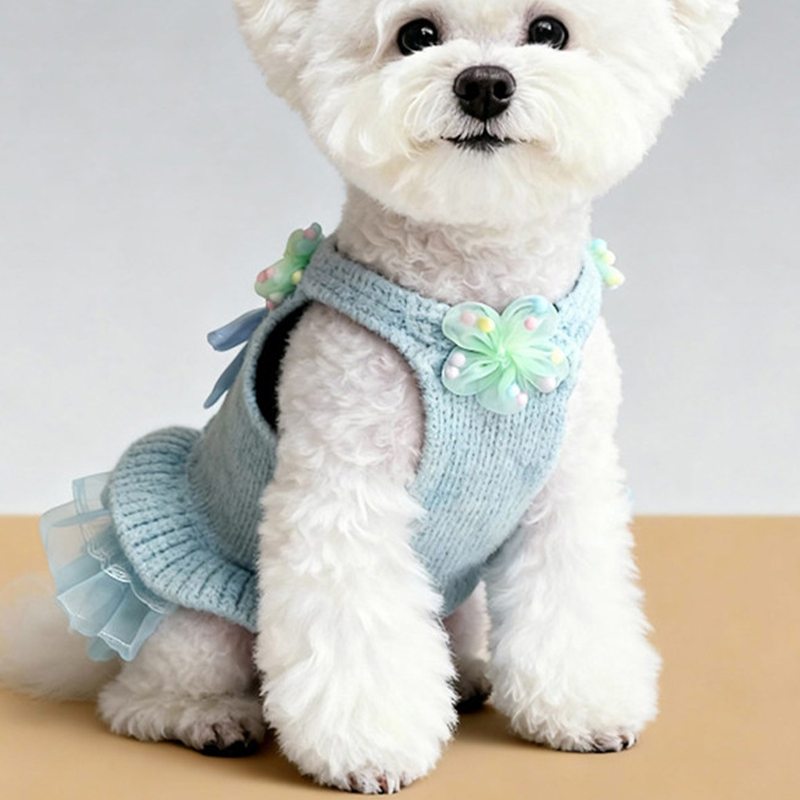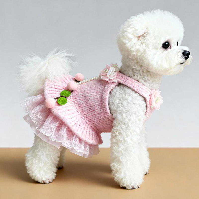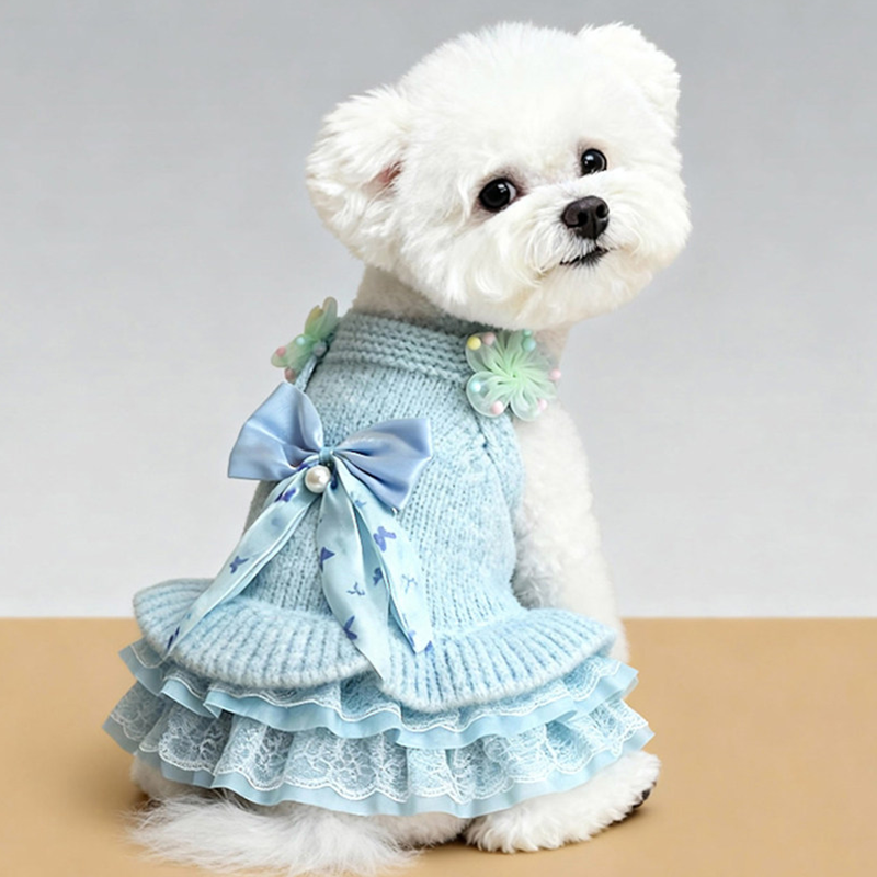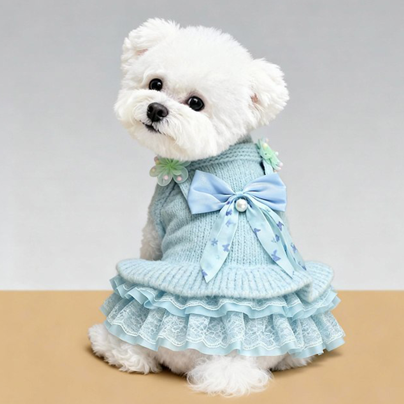 This cartoon knit sweater dress is designed for small and medium dogs to stay warm and stylish during autumn and winter. Made with thick knitted fabric, it provides cozy insulation and a soft comfortable feel, while the dress style adds a cute and fashionable look, making it ideal for daily wear, outings, and cold weather protection.