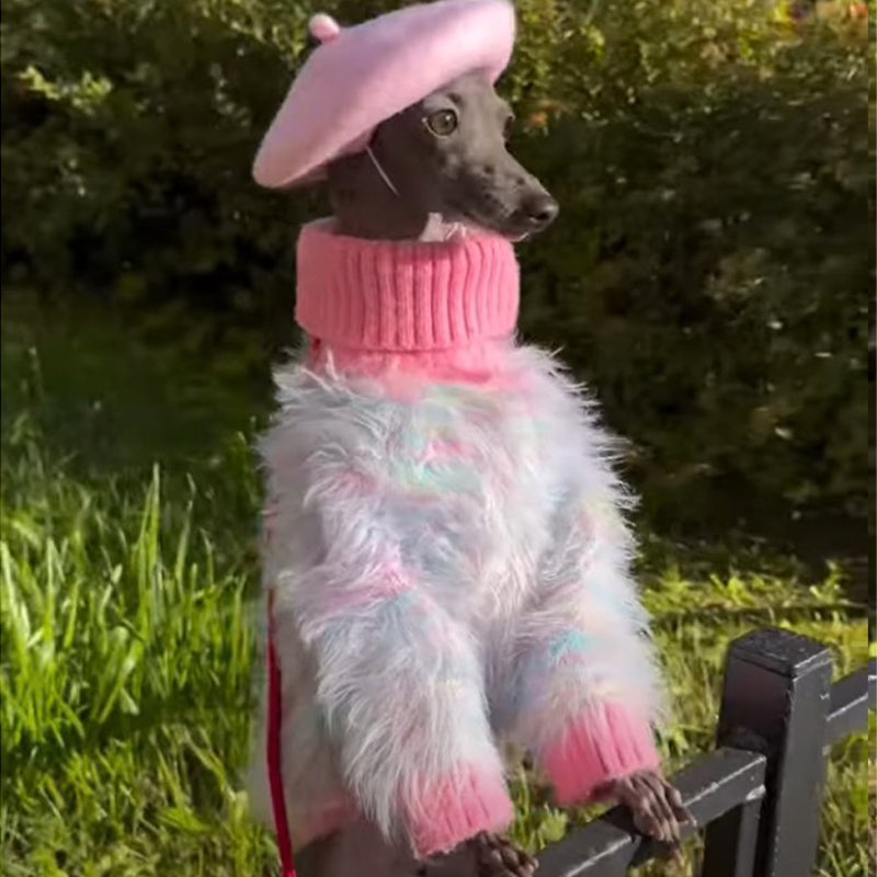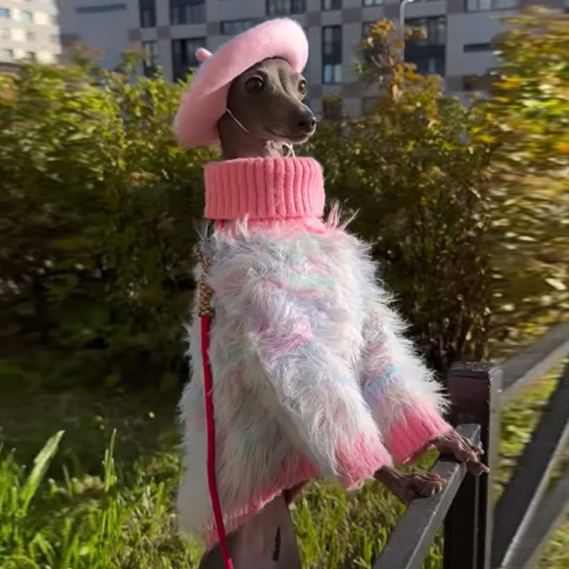 This Dog Jumper Knit Plush Sweater is perfect for your Italian Greyhound! Made with thick and luxurious material, this sweater will keep your pet warm and stylish while also preventing shedding. The high collar adds a touch of elegance to this cozy and comfortable sweater.