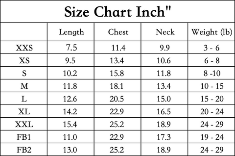 - FB size is PIKAPIKA's exclusive size range for medium sized dogs with special short and strong body form, such as French Bulldog, English Bulldog and Pug.