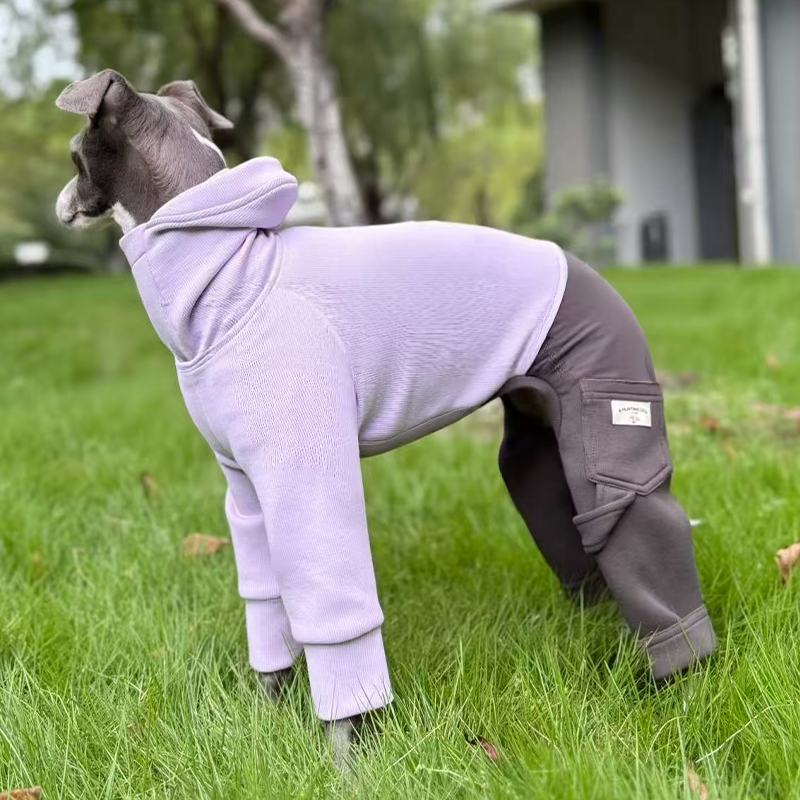 This anti static air cotton soft four leg hoodie is designed for Italian Greyhound and Whippet dogs as a comfortable autumn and winter base layer. Made with lightweight yet insulating air cotton fabric, it offers gentle warmth, full body coverage, and flexible stretch, making it ideal for daily wear, lounging, and layering in cold weather.