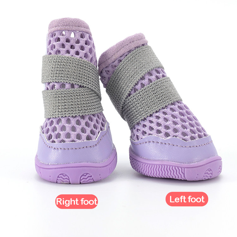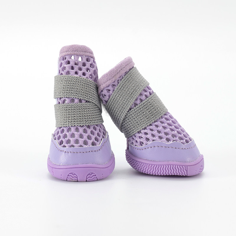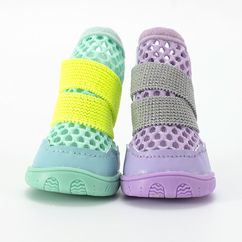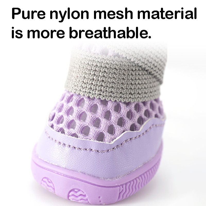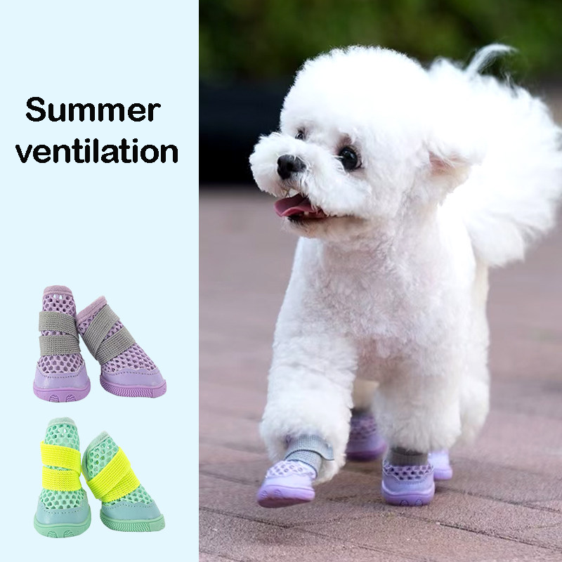 These breathable mesh dog shoes are designed for small and medium dogs, providing lightweight comfort during summer outdoor activities. The large mesh design allows excellent airflow to keep paws cool and dry, while the non slip sole offers reliable traction on different surfaces. Made with dirt resistant material, they help protect paws from dust, heat, and rough ground. Flexible and comfortable, these dog shoes are perfect for daily walks, travel, and outdoor adventures in warm weather.