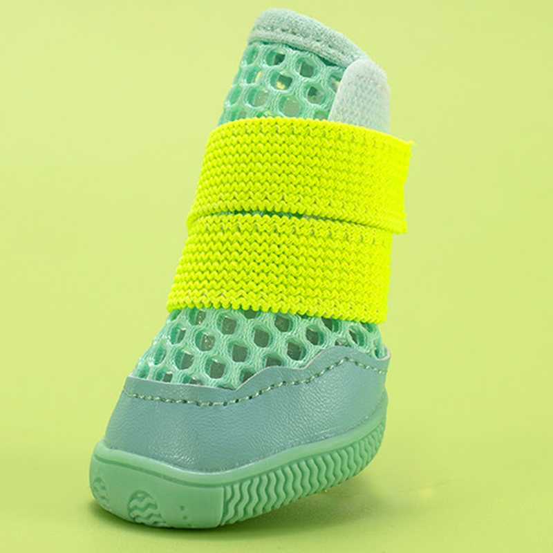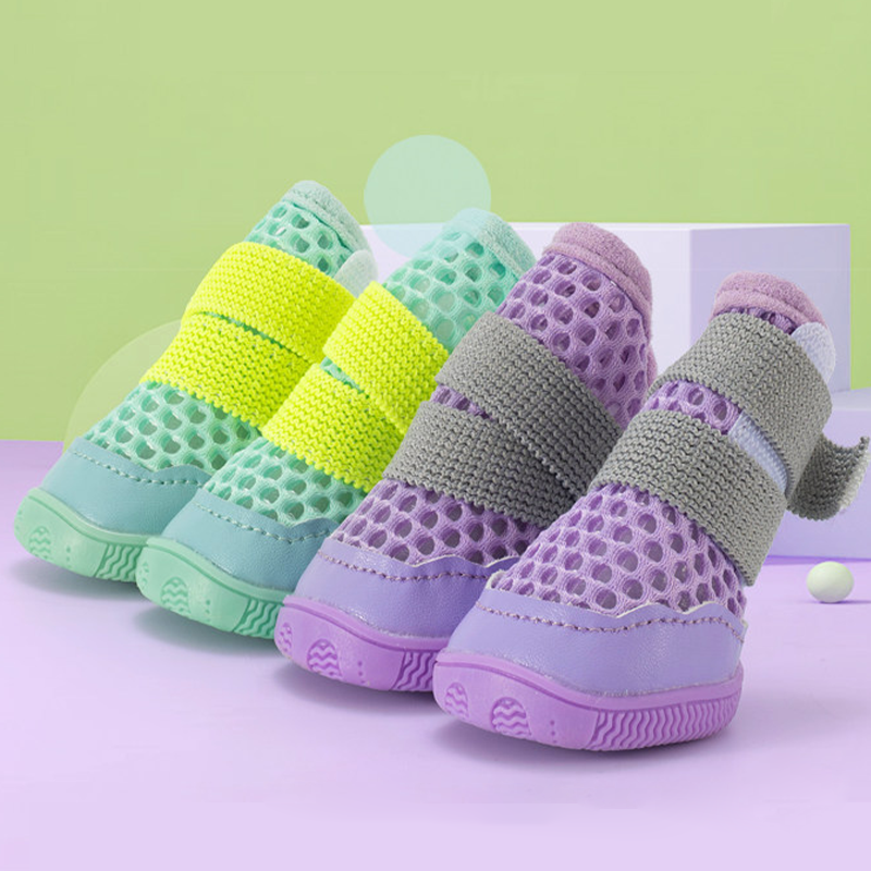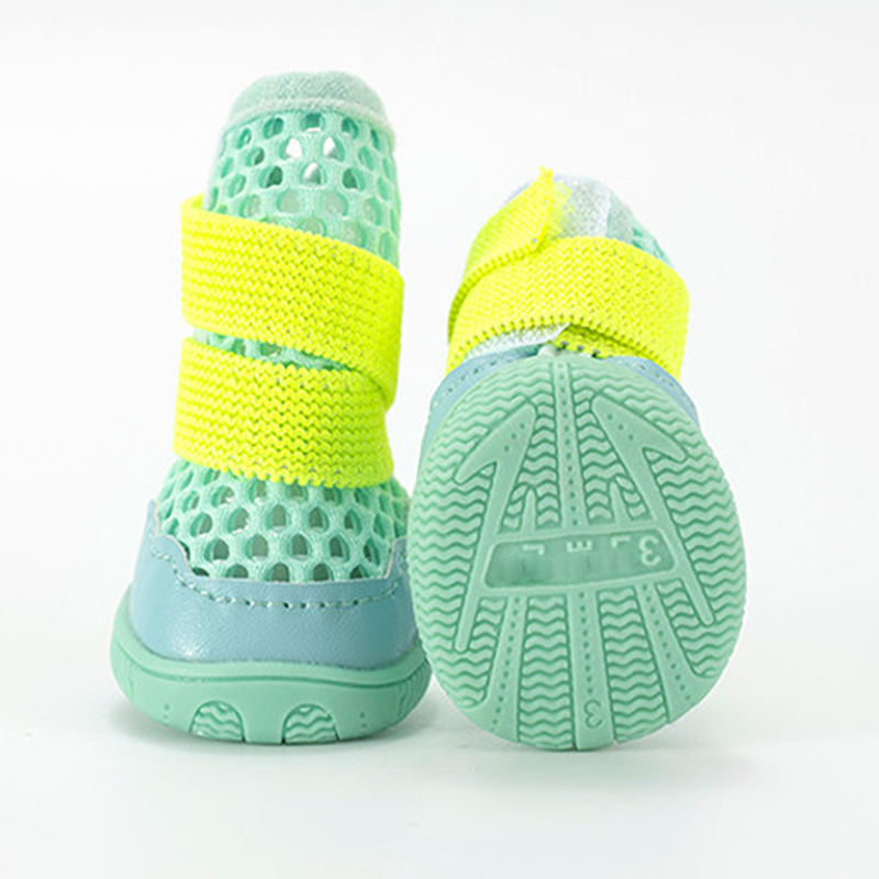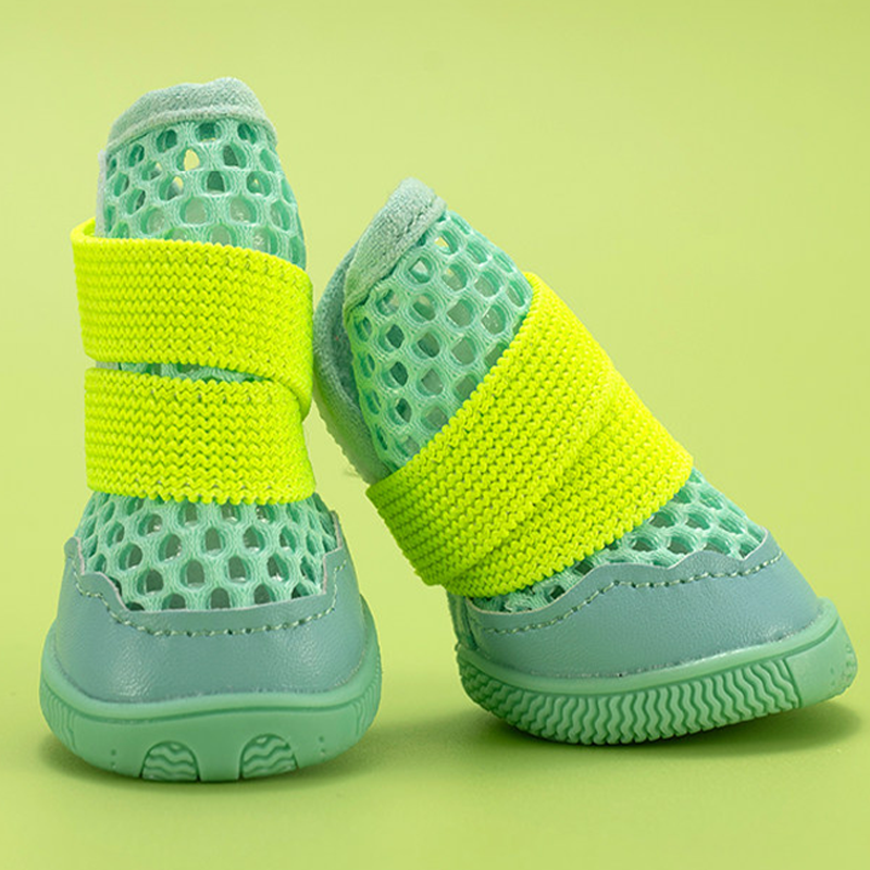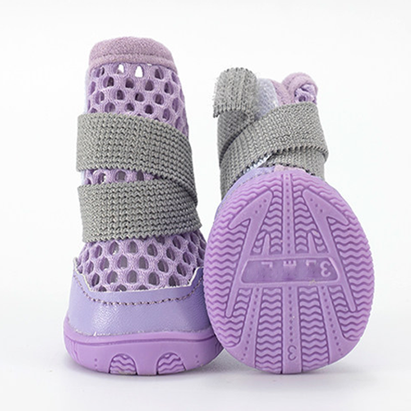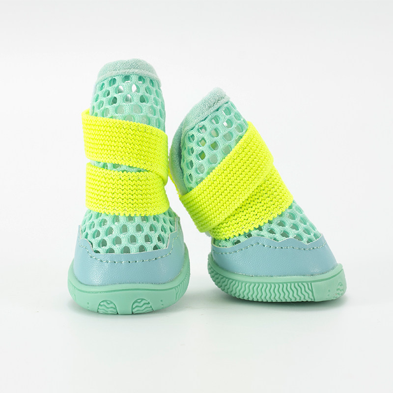 These breathable mesh dog shoes are designed for small and medium dogs, providing lightweight comfort during summer outdoor activities. The large mesh design allows excellent airflow to keep paws cool and dry, while the non slip sole offers reliable traction on different surfaces. Made with dirt resistant material, they help protect paws from dust, heat, and rough ground. Flexible and comfortable, these dog shoes are perfect for daily walks, travel, and outdoor adventures in warm weather.