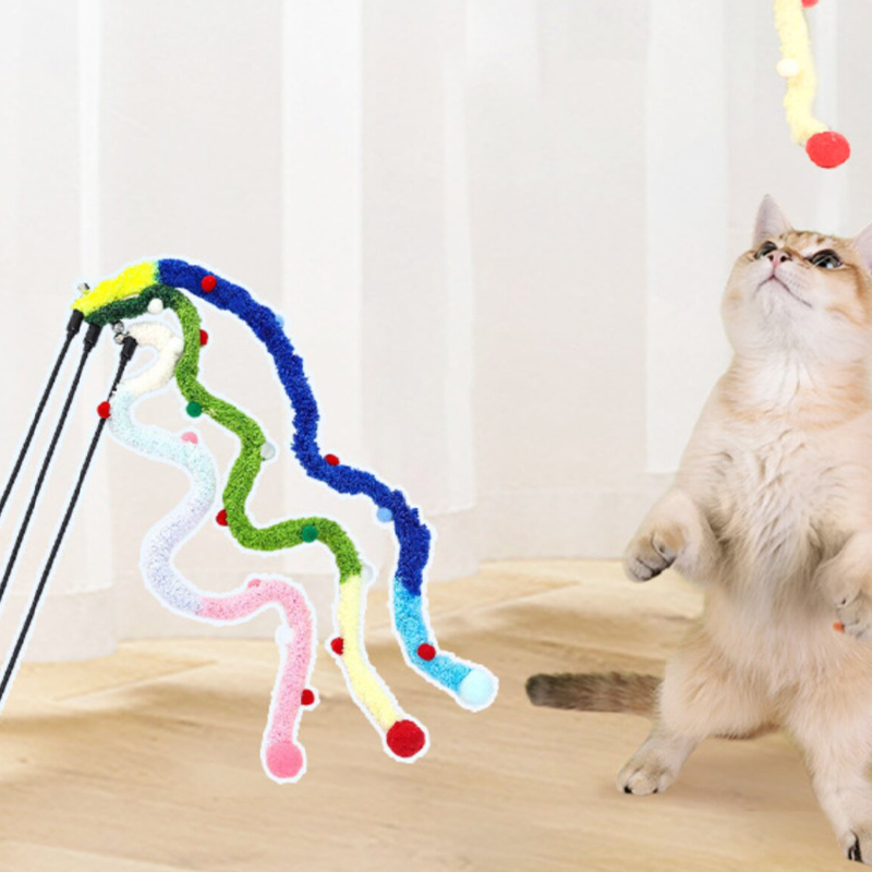 This cat teaser wand toy features colorful yarn plush balls and a built-in bell to capture your cat’s attention and encourage active play. The long rod design allows smooth movement and wider play range, making it easy to create engaging interactive games between you and your cat. Made from durable materials, the plush yarn balls are suitable for biting, batting, and chasing during daily play. The gentle bell sound adds extra stimulation, helping trigger natural hunting instincts and keeping your cat entertained, active, and mentally stimulated.