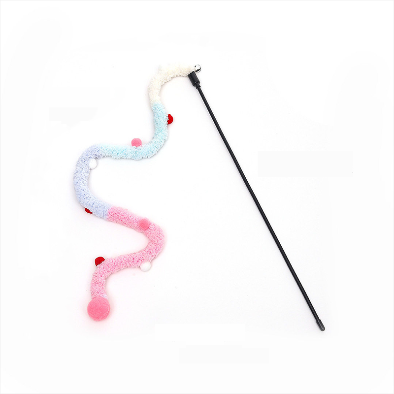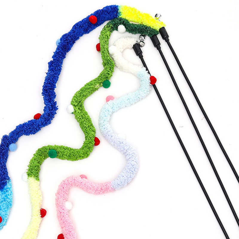 Cat Teaser Wand Toy Bell Yarn Plush Ball Long Rod