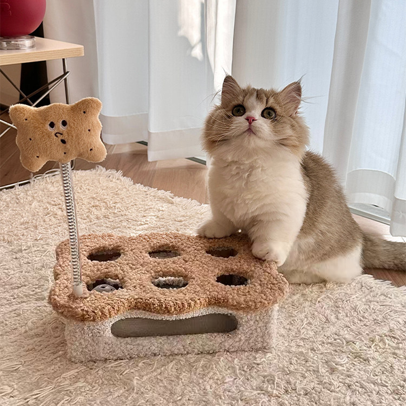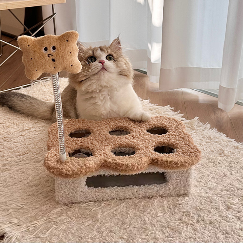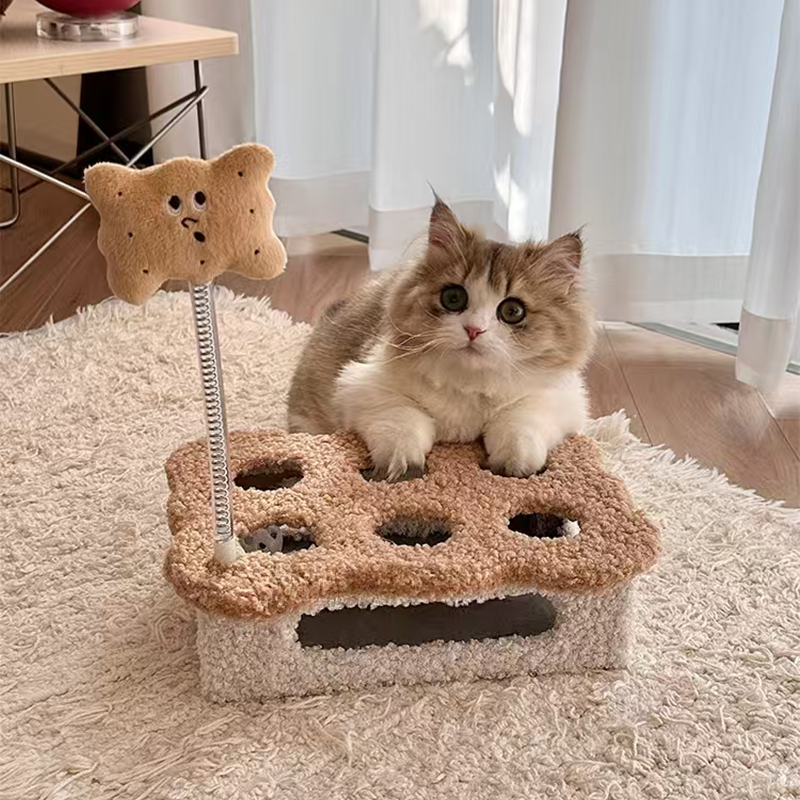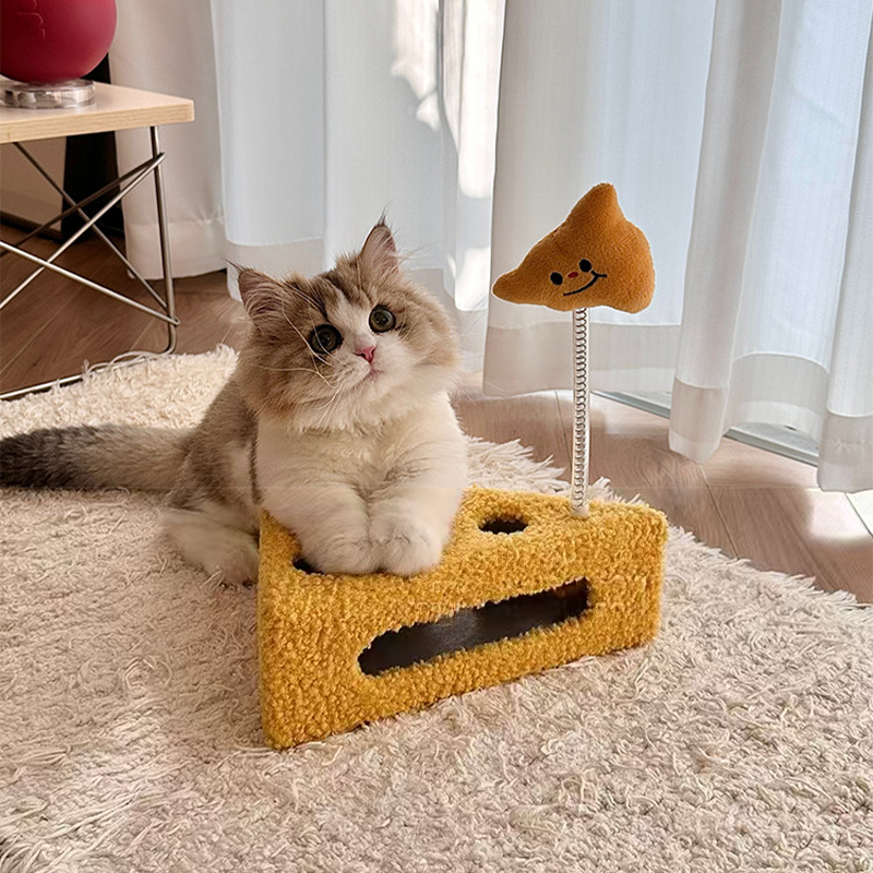 This cheese cookie cat toy features a fun and interactive design that encourages natural hunting and play behavior. With a hollow tunnel-style structure and built-in bell ball, it stimulates your cat’s curiosity and keeps them engaged for longer play sessions. The spring element adds unpredictable movement, making playtime more exciting and mentally stimulating. Made from pet-safe materials, it is lightweight, durable, and suitable for daily solo or interactive play. This toy helps relieve boredom, increase activity, and support healthy exercise for indoor cats.