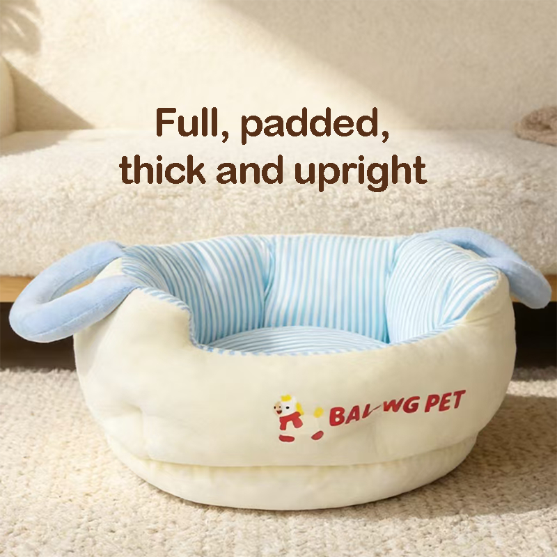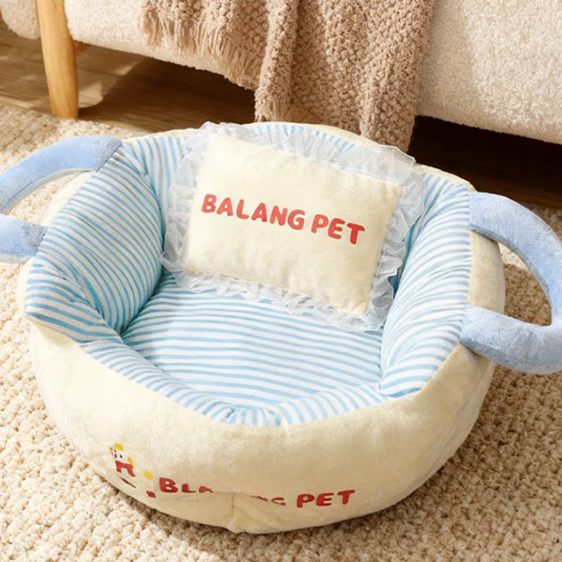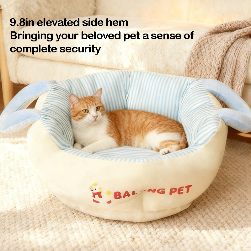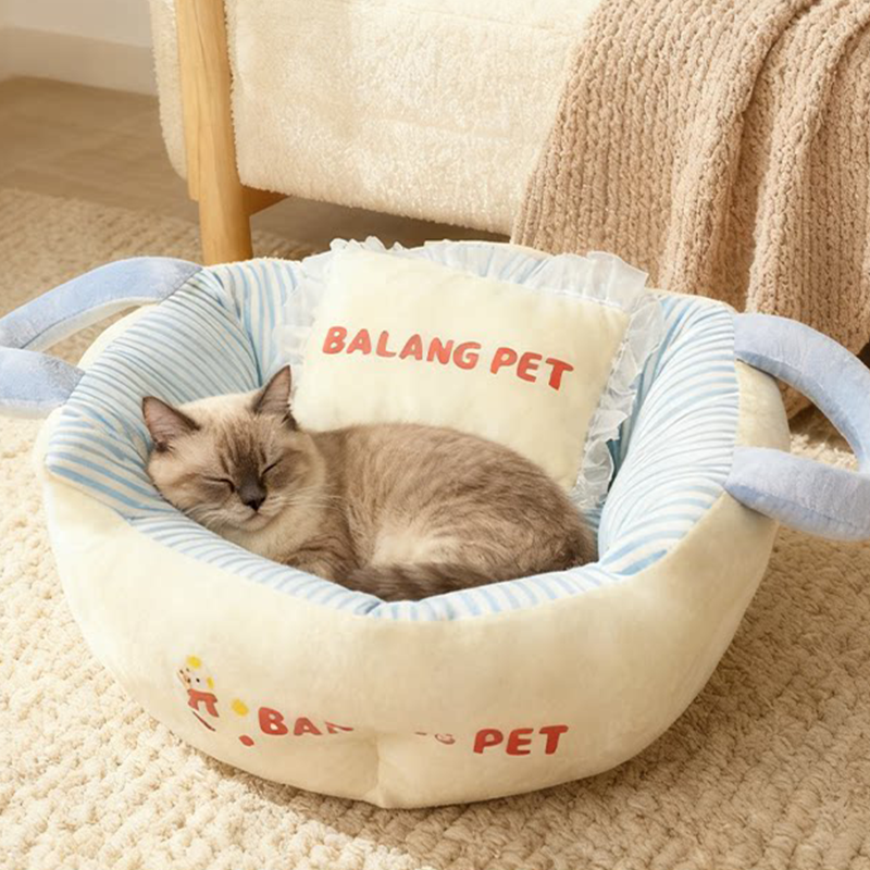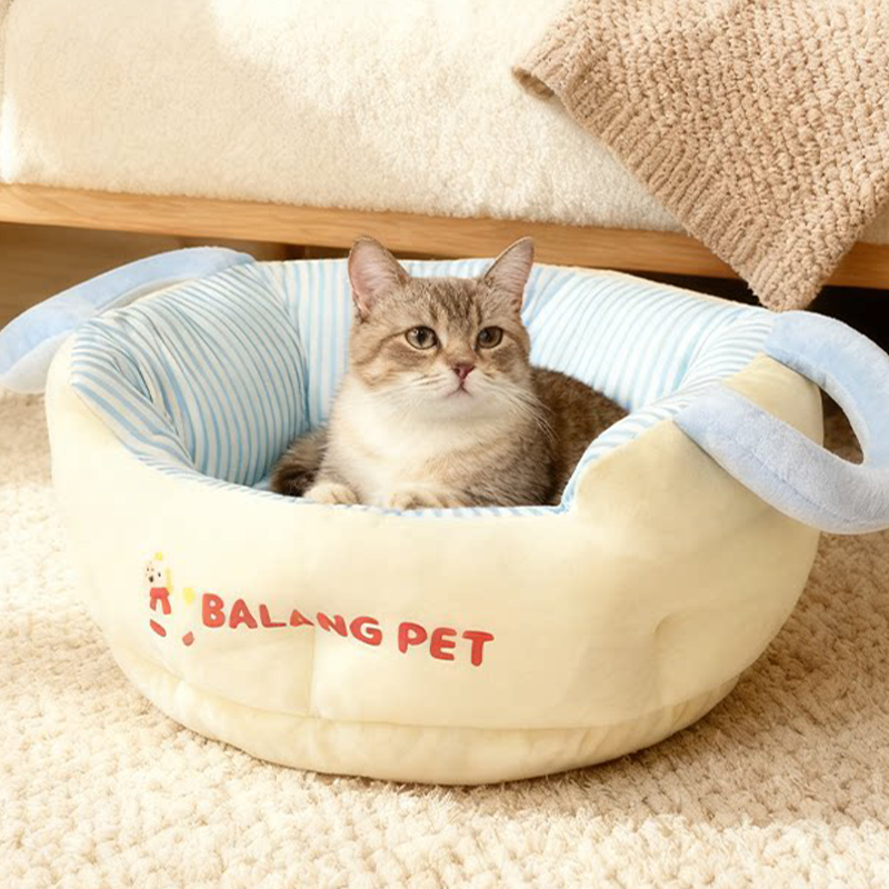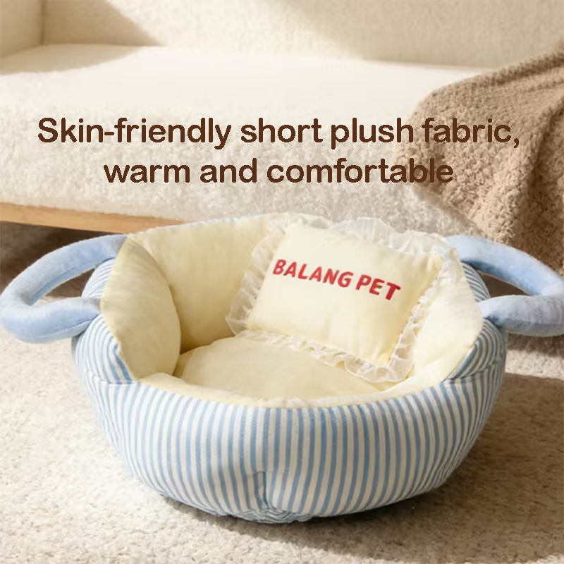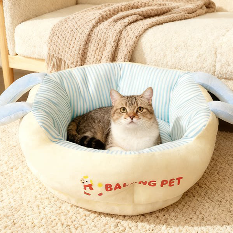 Color-Block Striped Cat Bed Large Thick Portable