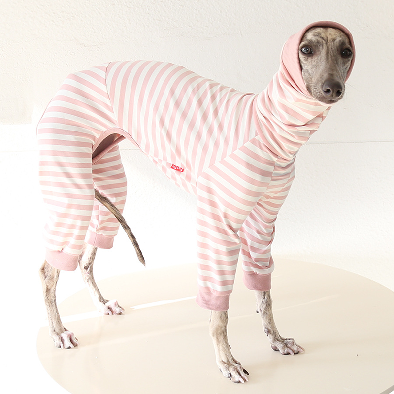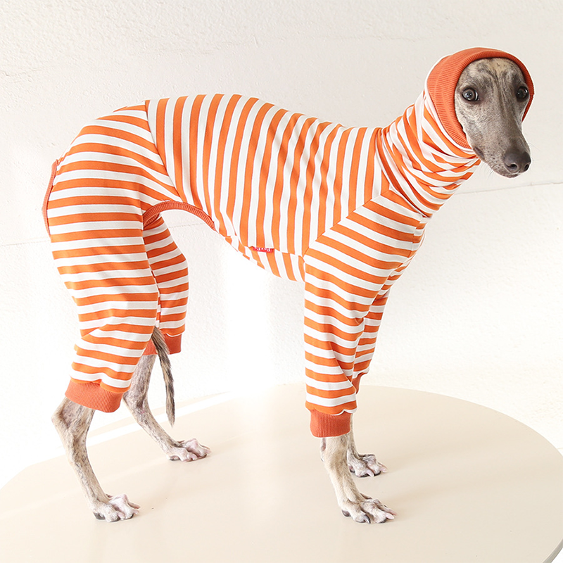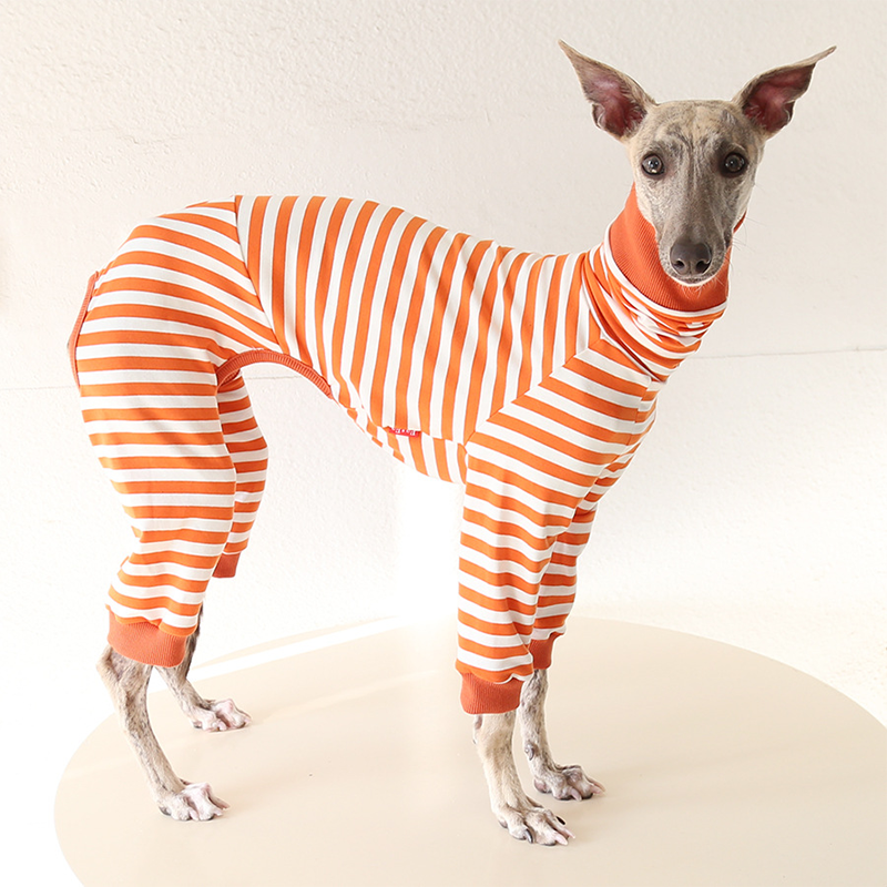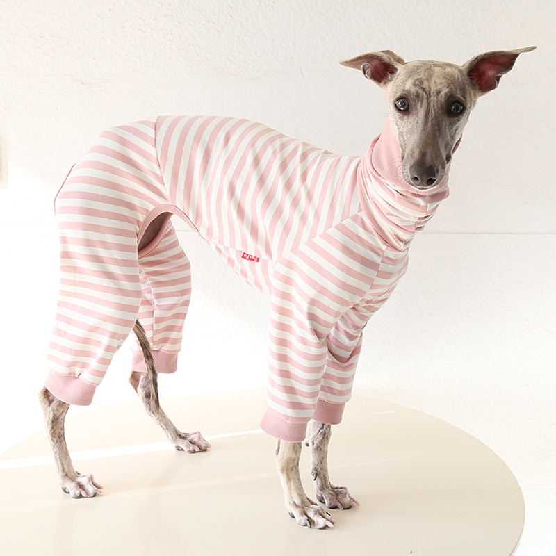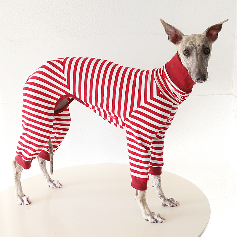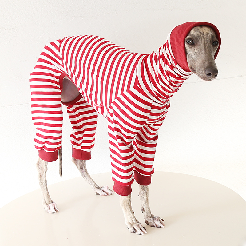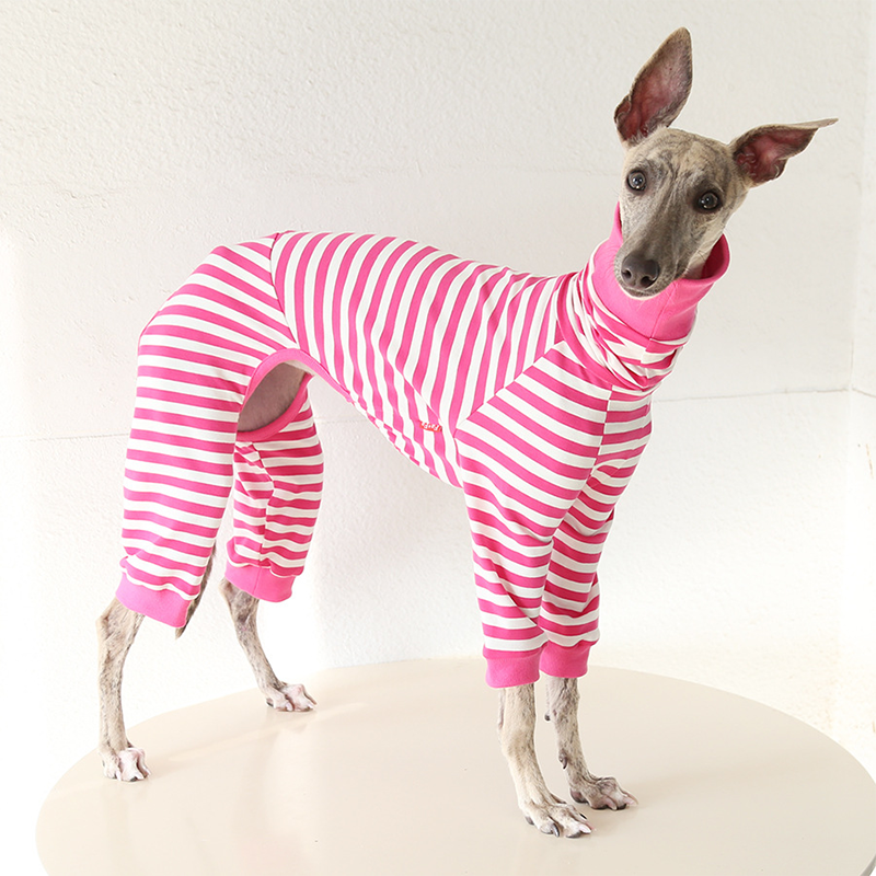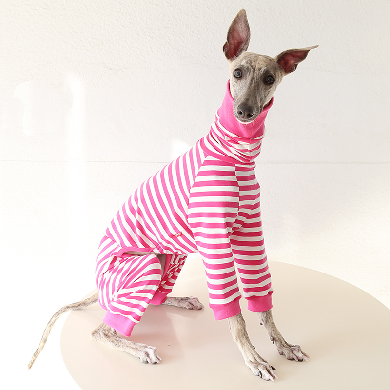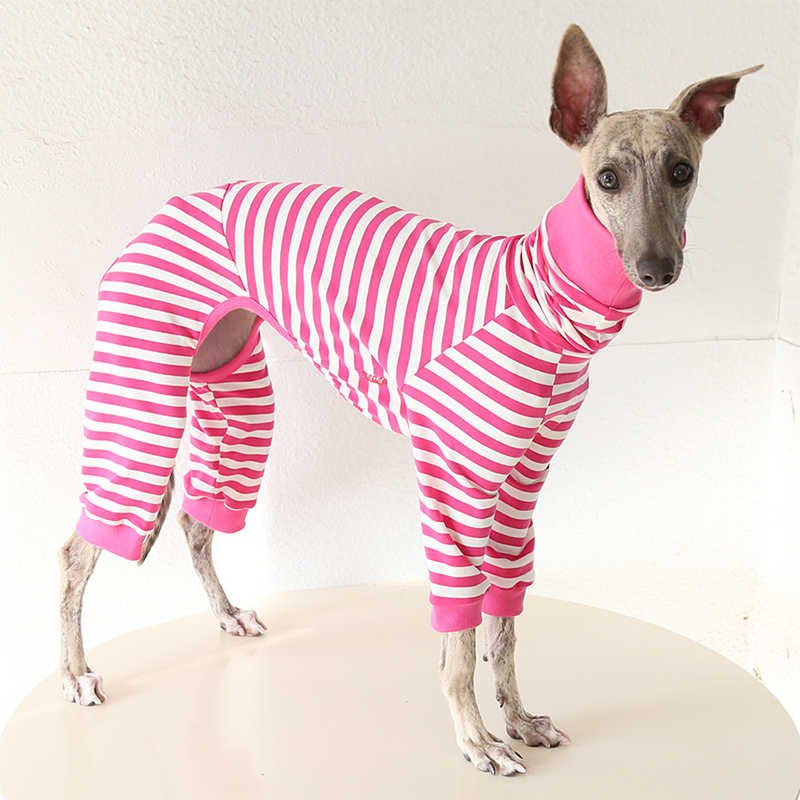 This colorful striped cotton onesies is designed for Italian Greyhound and Whippet dogs to enjoy soft and breathable comfort during daily rest. Made with gentle cotton fabric, it feels lightweight and cozy on the skin, making it ideal for sleeping and indoor lounging. This design does not include a leash opening, providing a smooth and uninterrupted fit for relaxation and bedtime wear.