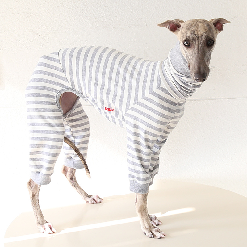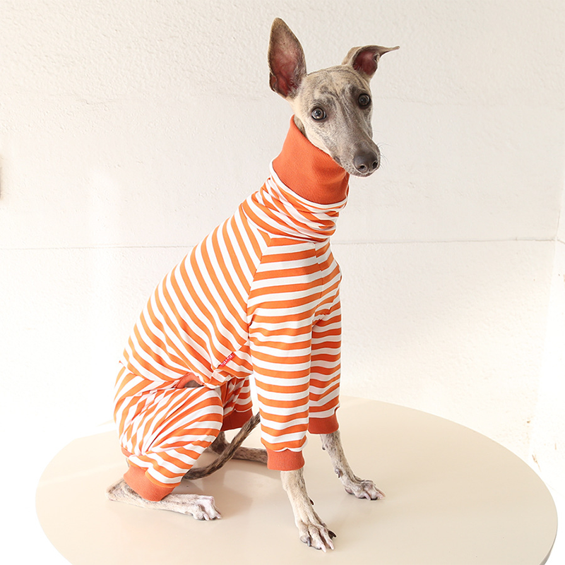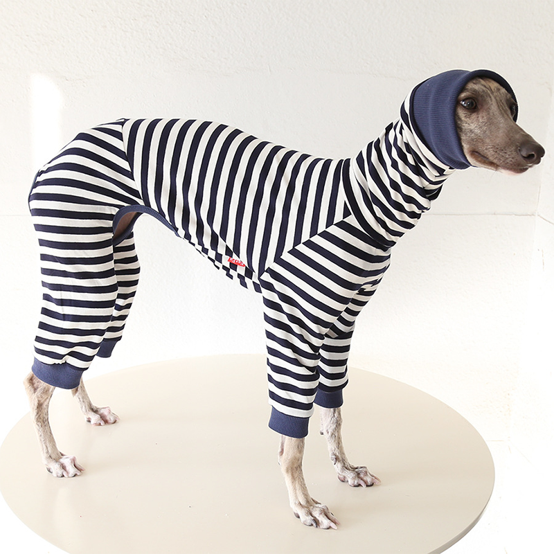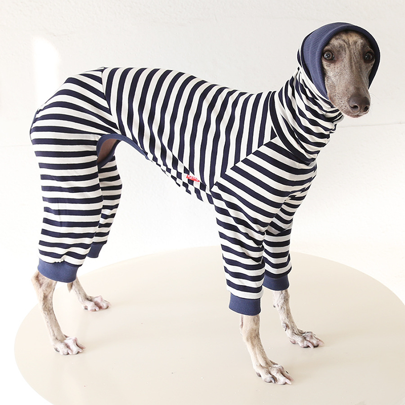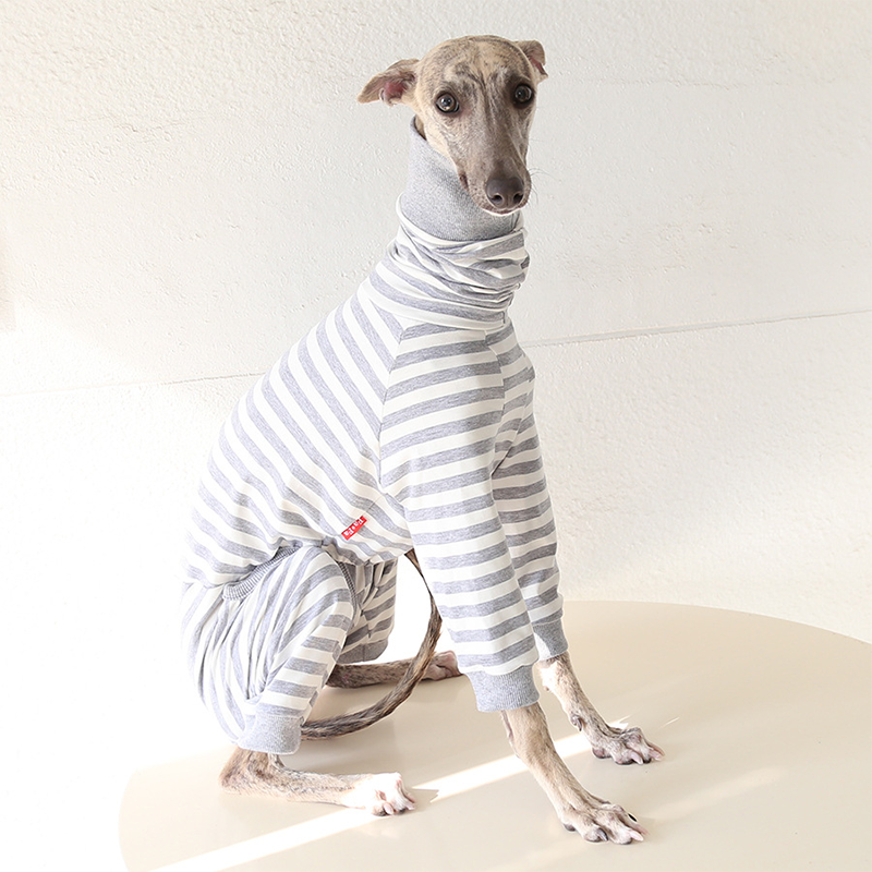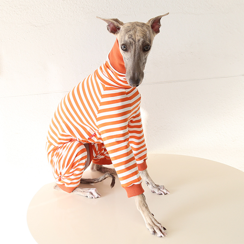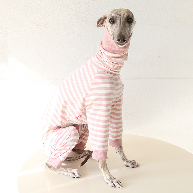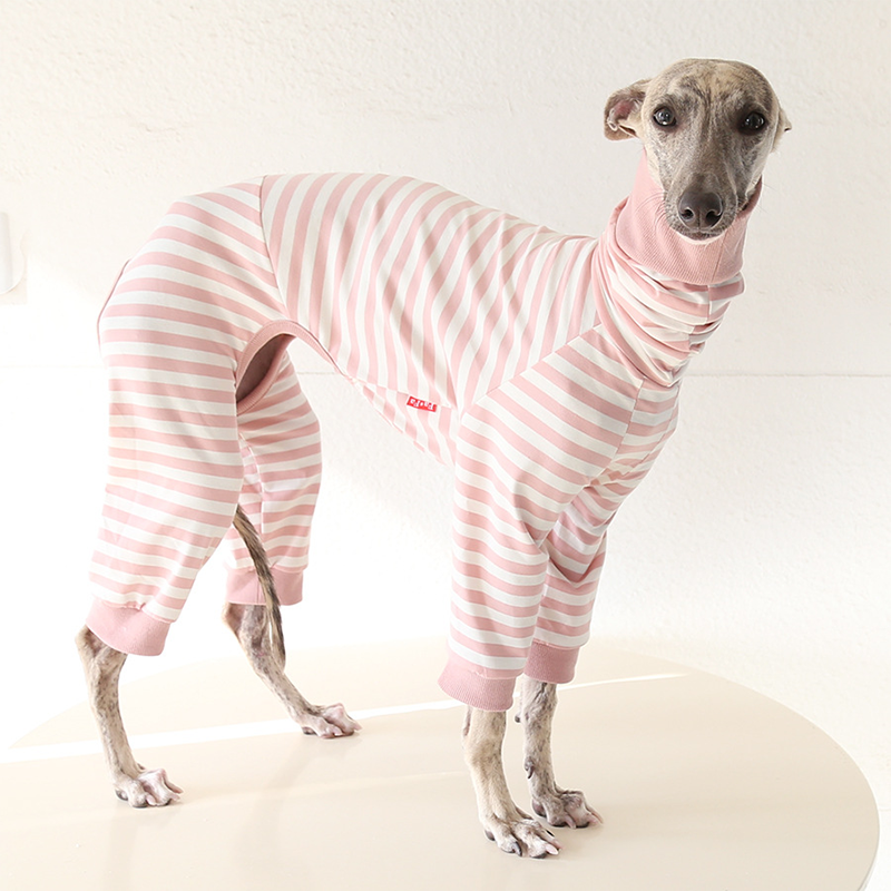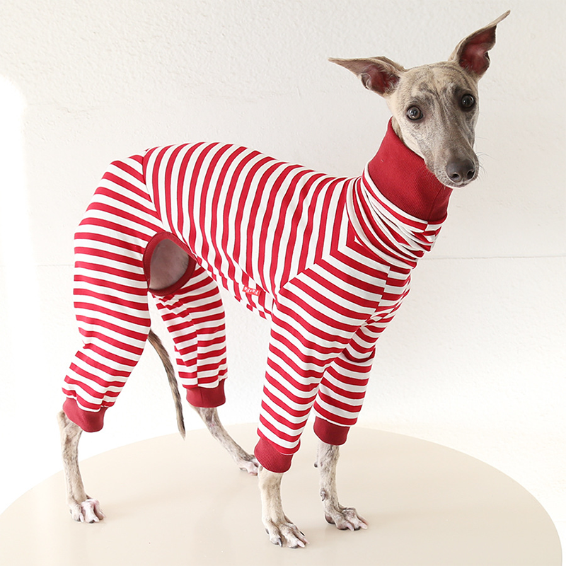 This colorful striped cotton onesies is designed for Italian Greyhound and Whippet dogs to enjoy soft and breathable comfort during daily rest. Made with gentle cotton fabric, it feels lightweight and cozy on the skin, making it ideal for sleeping and indoor lounging. This design does not include a leash opening, providing a smooth and uninterrupted fit for relaxation and bedtime wear.