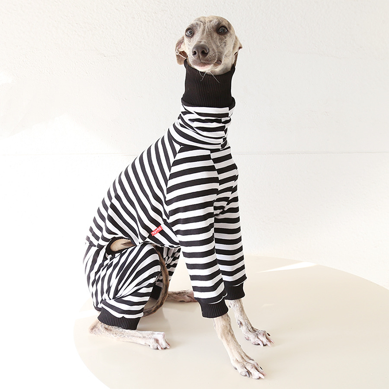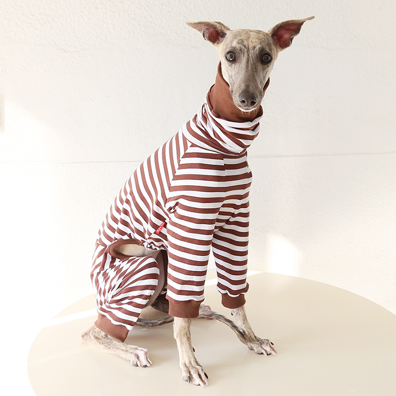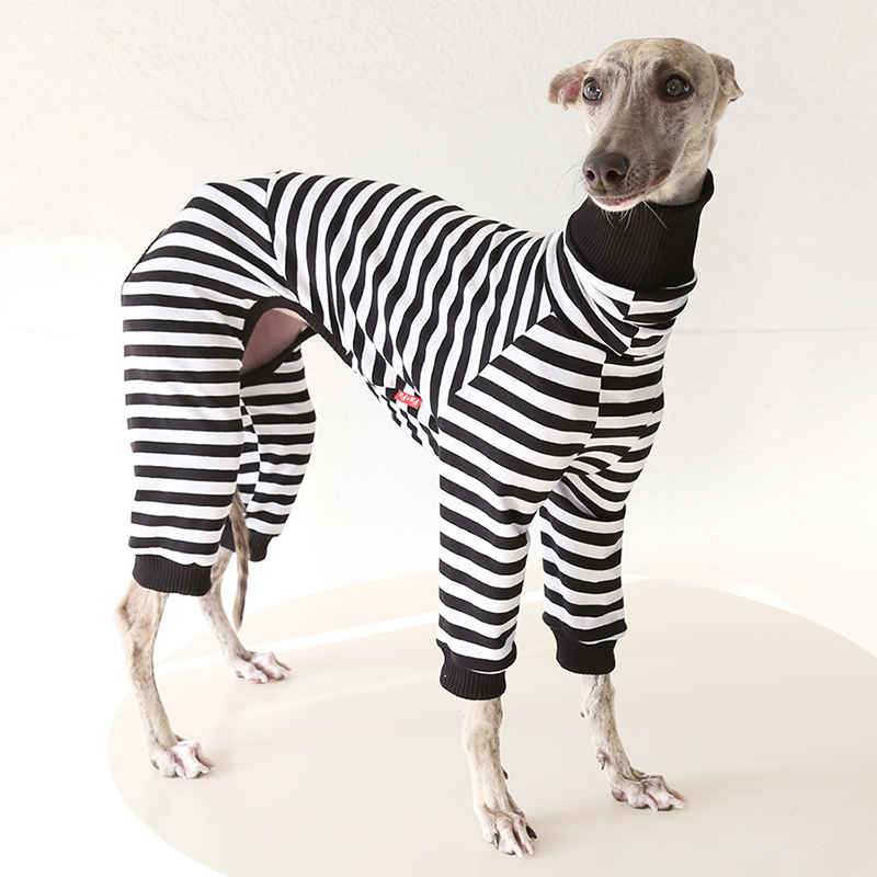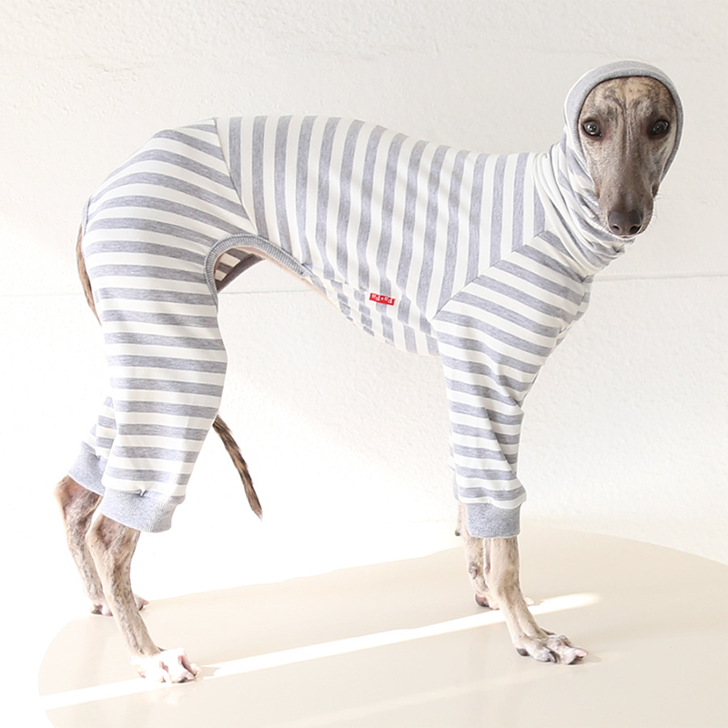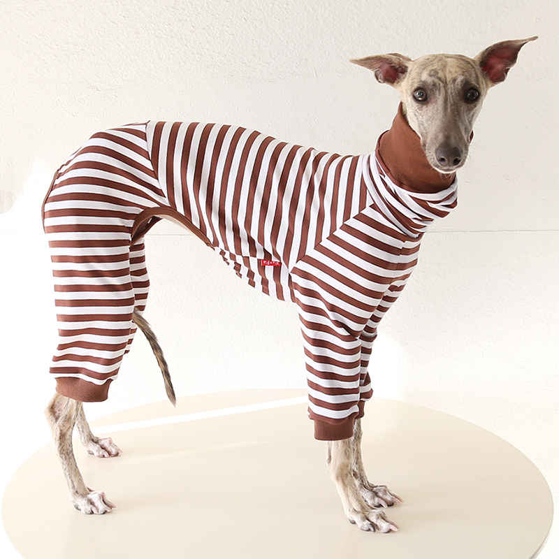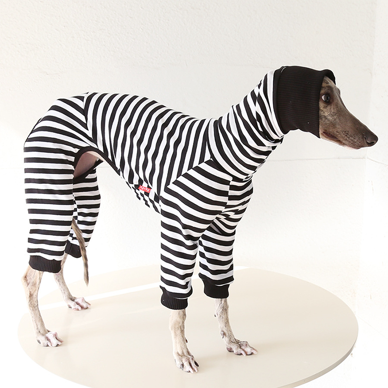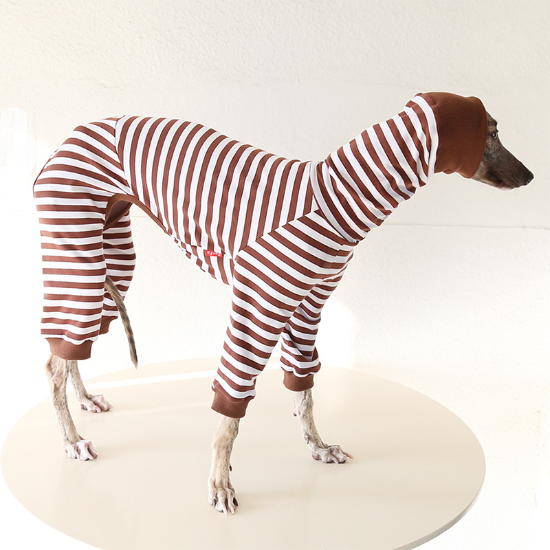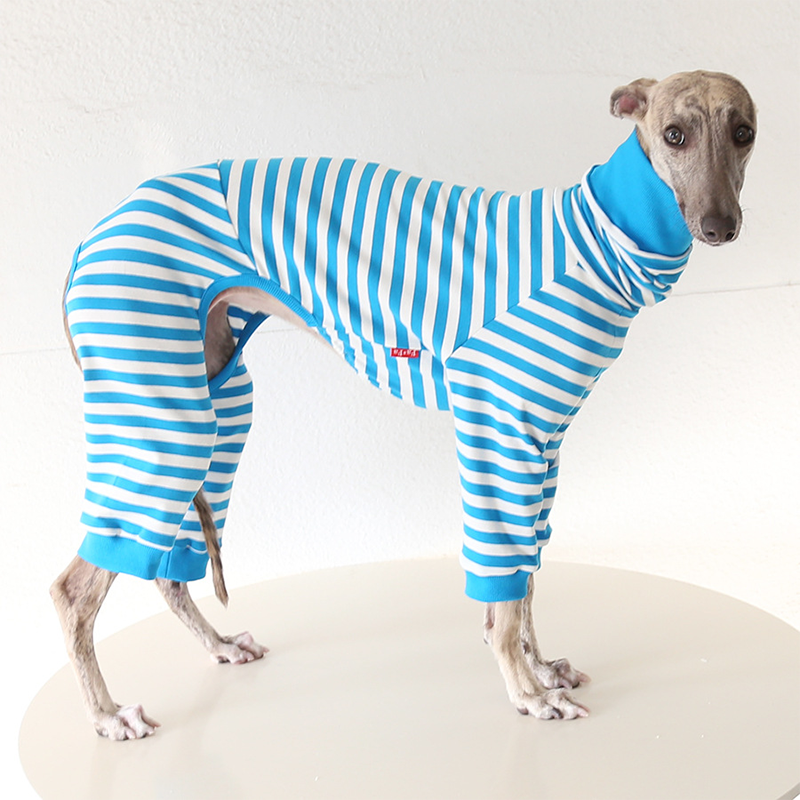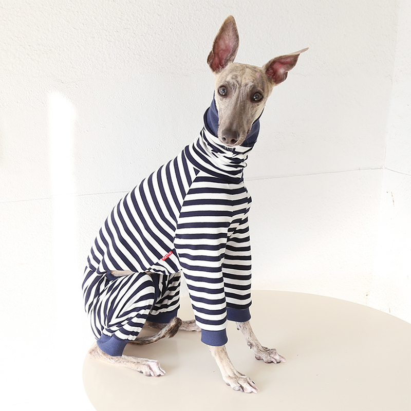 This colorful striped cotton onesies is designed for Italian Greyhound and Whippet dogs to enjoy soft and breathable comfort during daily rest. Made with gentle cotton fabric, it feels lightweight and cozy on the skin, making it ideal for sleeping and indoor lounging. This design does not include a leash opening, providing a smooth and uninterrupted fit for relaxation and bedtime wear.