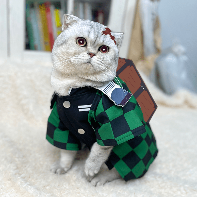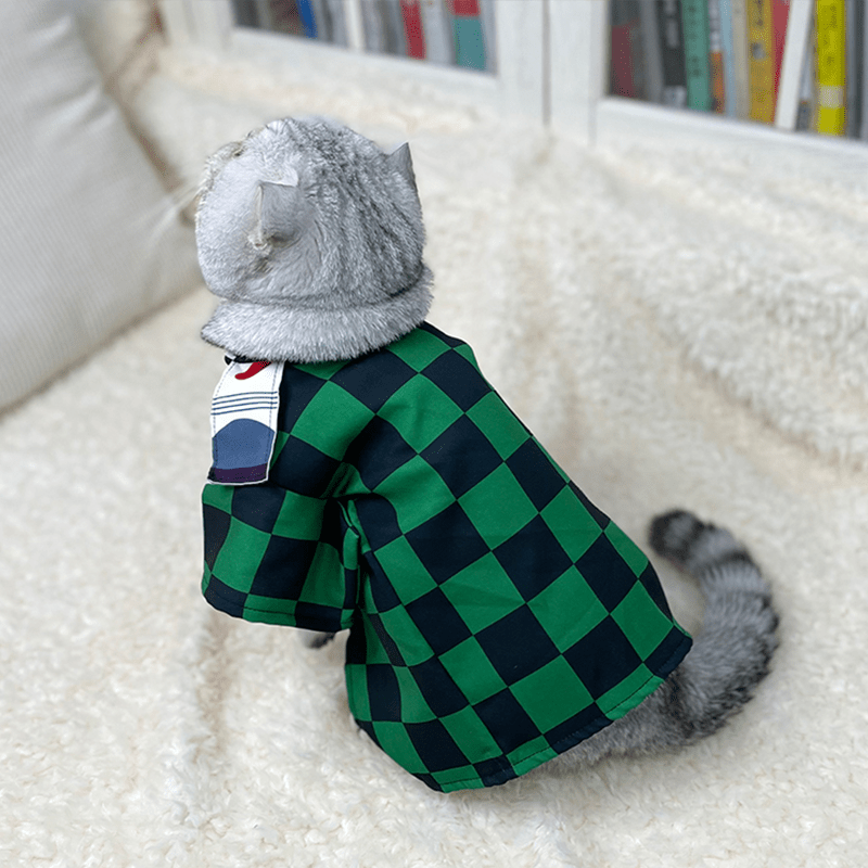 Dress your cat in the iconic style of Tanjiro from Demon Slayer with this expertly crafted kimono cloak. Designed to fit both cats comfortably, this costume features authentic patterns and colors that capture the essence of the character’s outfit. Perfect for cosplay events, photo sessions, or themed celebrations, it allows your pet to join in the fun while ensuring ease of wear and movement. Made from durable, lightweight fabric, it balances style with comfort for your furry companion.