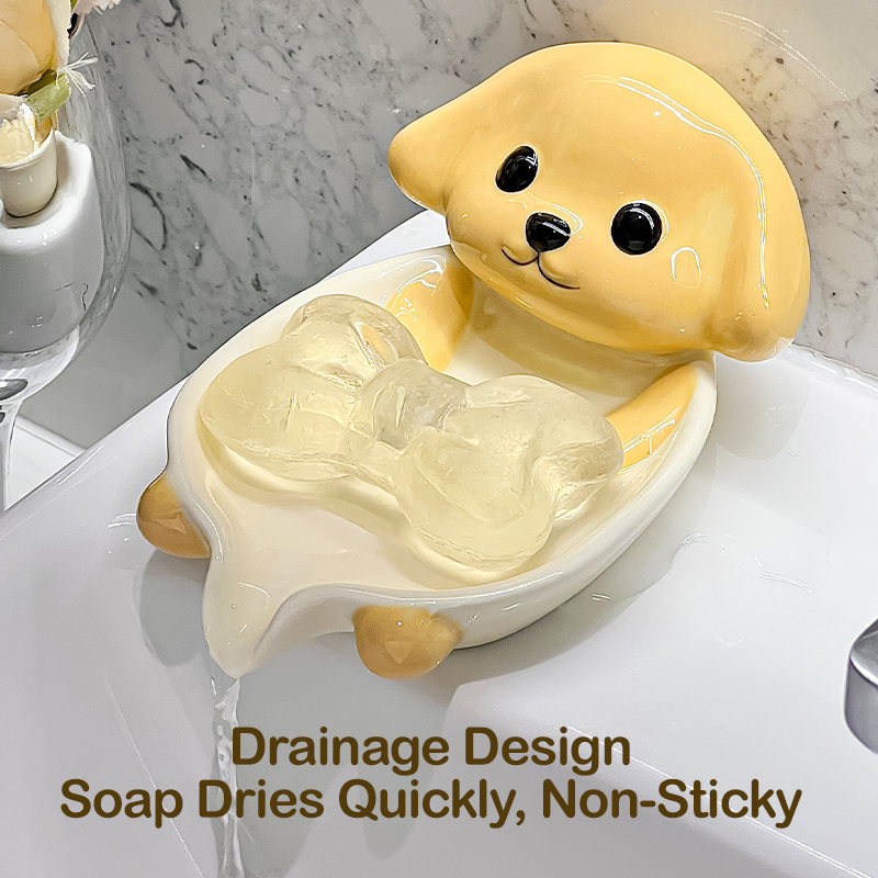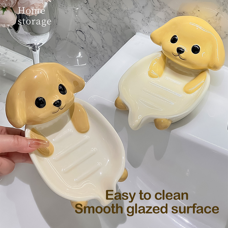 Dog Ceramic Soap Dish Draining Fast Dry Bathroom Holder
