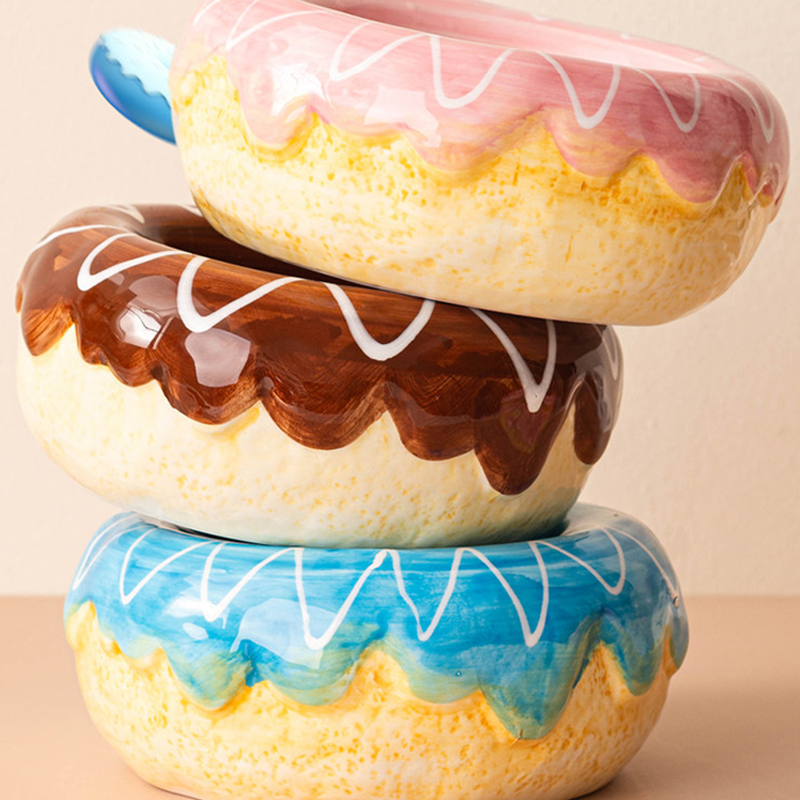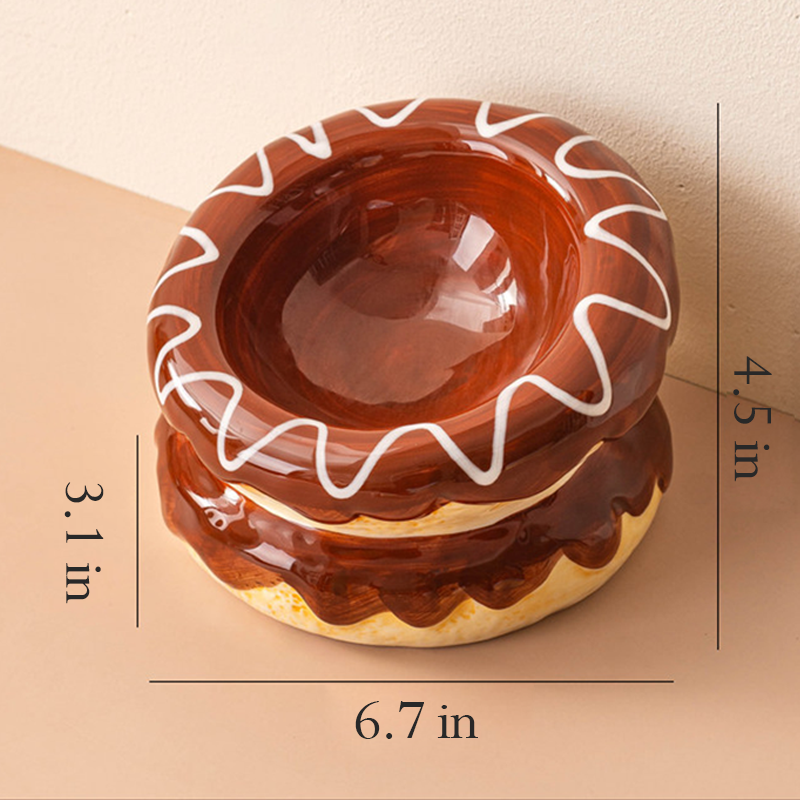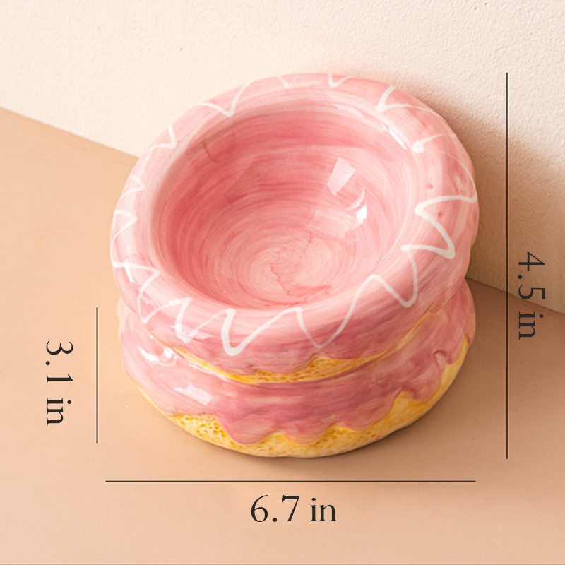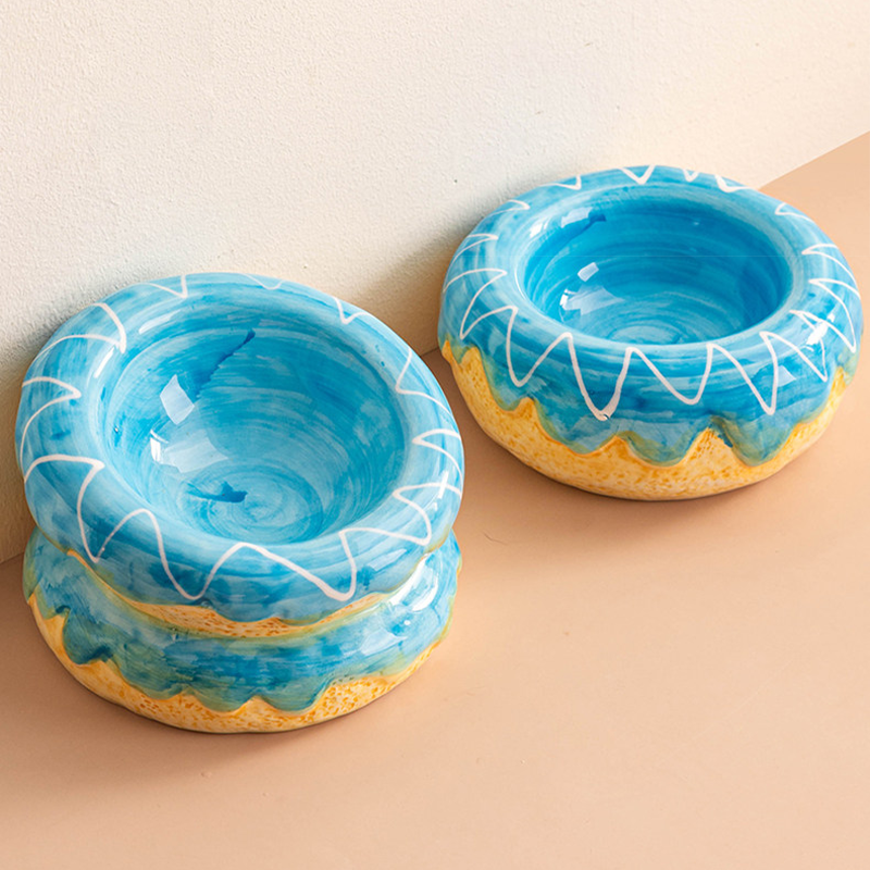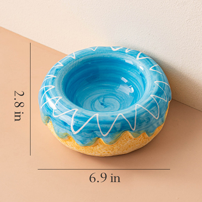 This donut shaped ceramic cat bowl is designed to provide a comfortable and ergonomic feeding experience for your cat. The rounded donut design helps support a natural eating posture and protects the neck while drinking or eating. Made from durable ceramic, the bowl offers excellent stability to help prevent tipping and spills during mealtime. Its smooth glazed surface is easy to clean and suitable for both food and water, making daily feeding neat, safe, and comfortable for your cat.