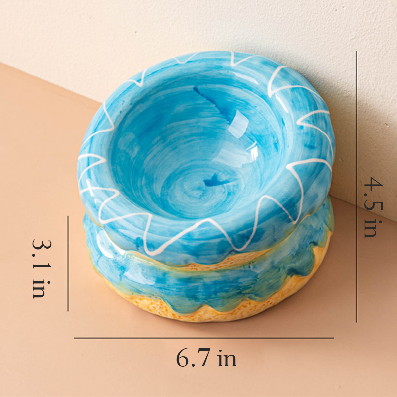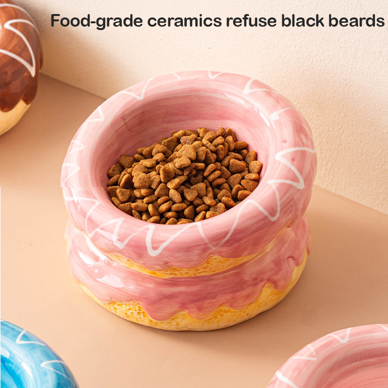 Donut Shaped Ceramic Cat Bowl Neck Protecting Anti Spill