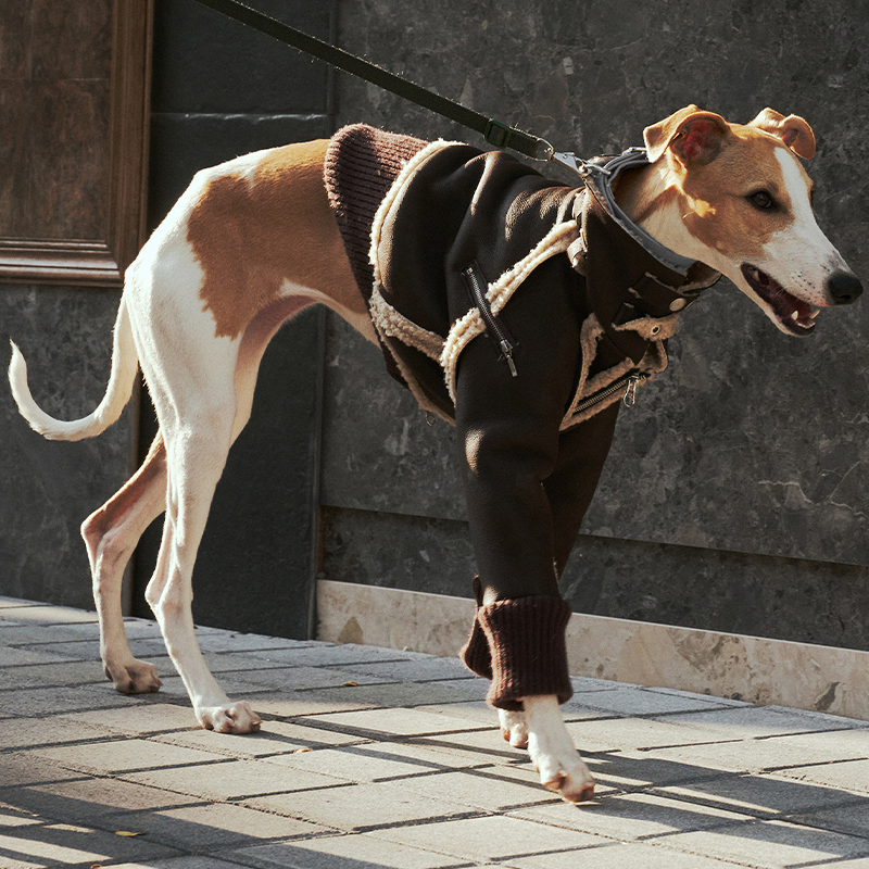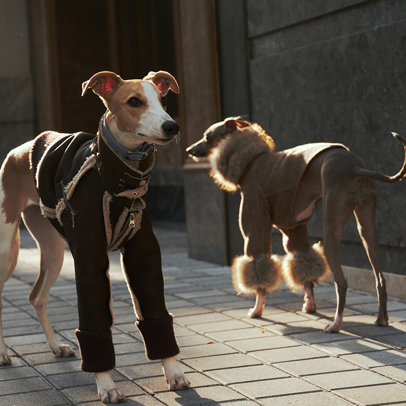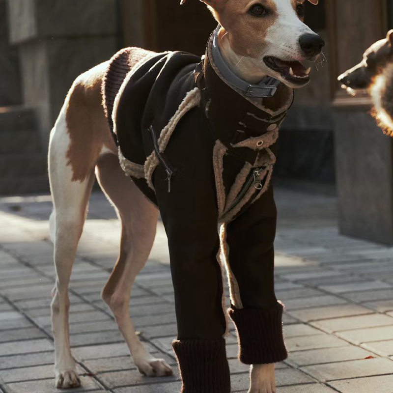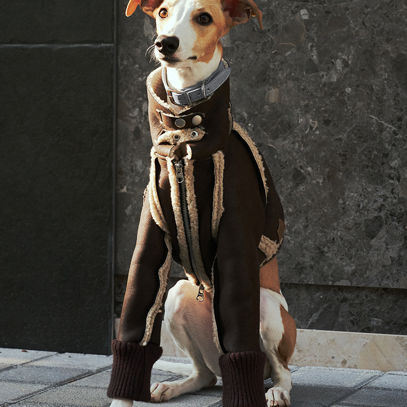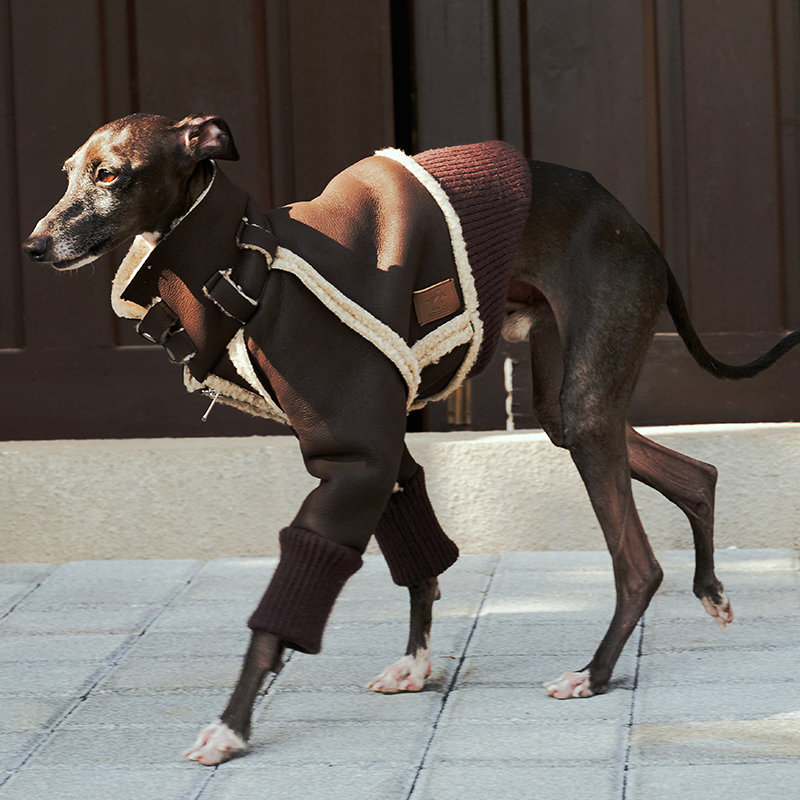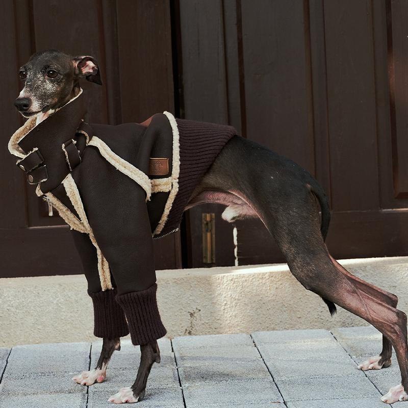 Designed for small Greyhound and Whippet dogs, this Elegant Shearling jacket combines warmth and refined style for the winter season. The bonded wool blend exterior with soft inner lining provides reliable insulation while maintaining a comfortable and breathable feel. Tailored to fit the slim body shape of sighthounds, the structured cut offers a secure yet flexible fit for daily walks or special outings. The classic jacket silhouette adds a polished and timeless look, making it a warm and elegant choice for cold weather wear.
