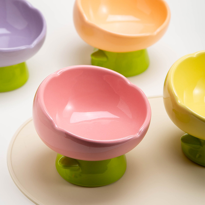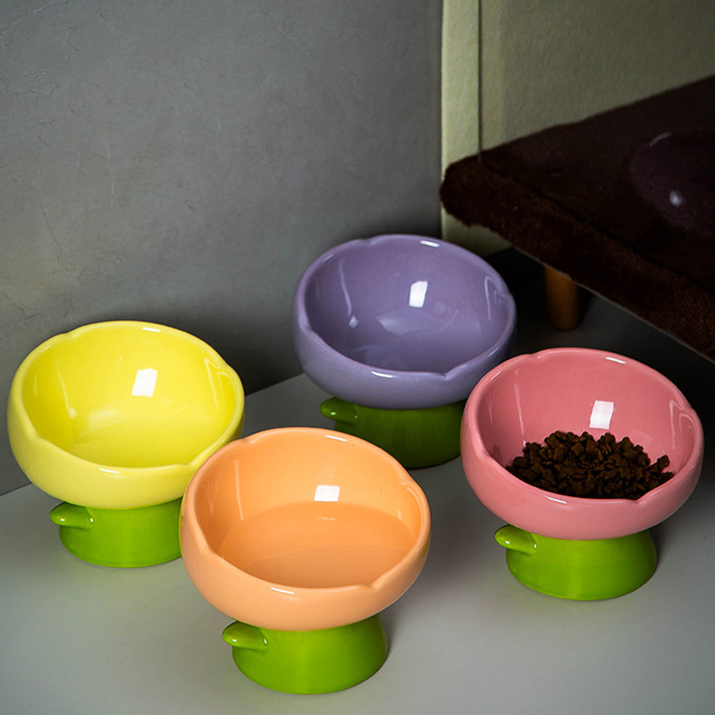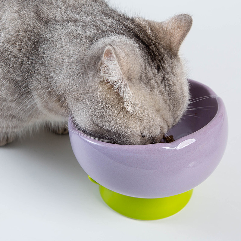 Elevated Ceramic Cat Bowl Slant Neck Anti Spill