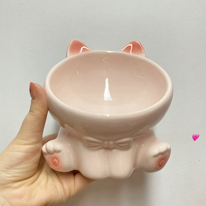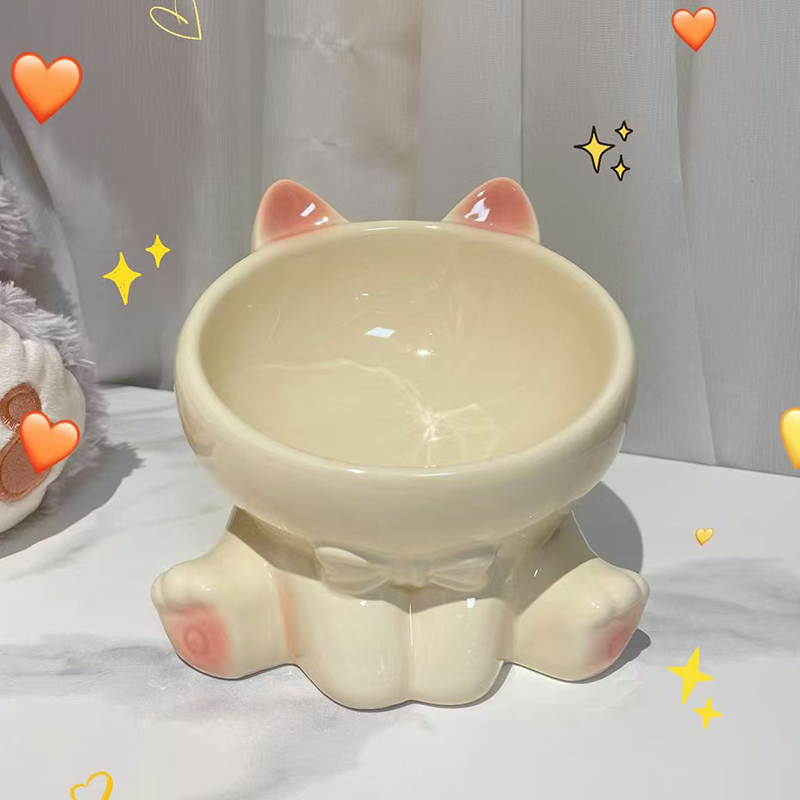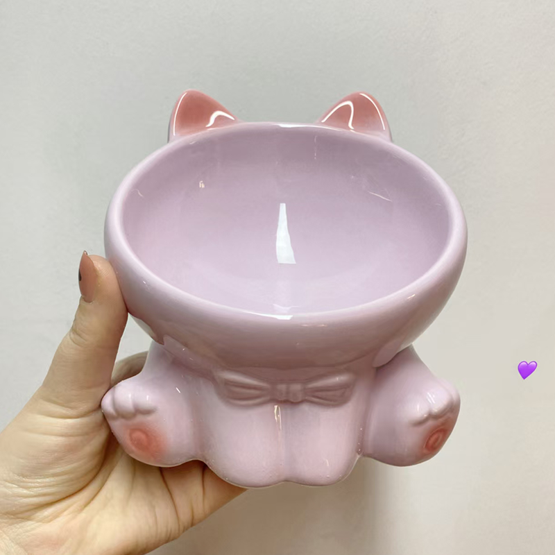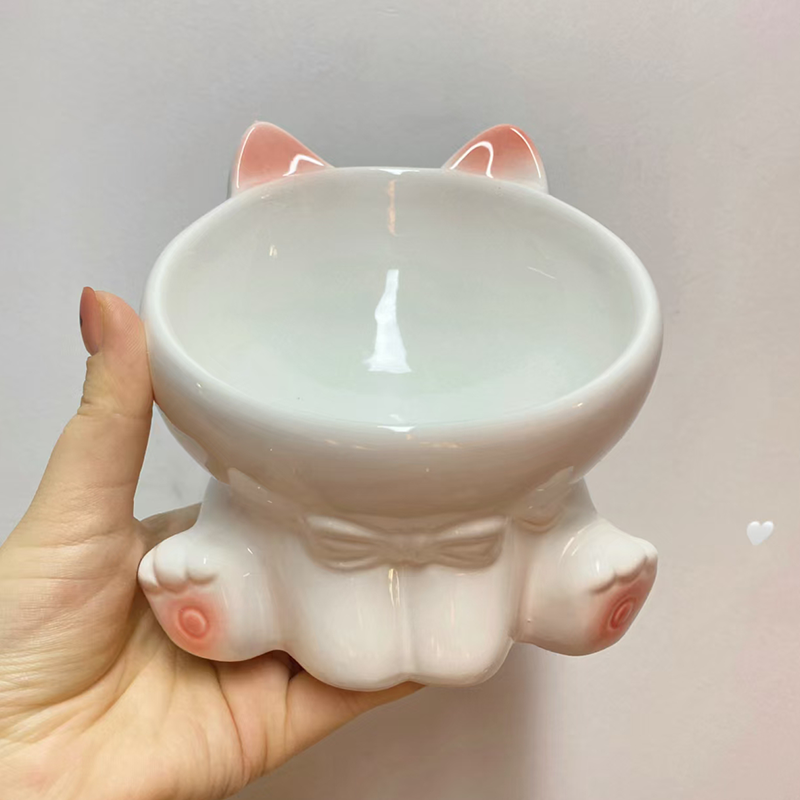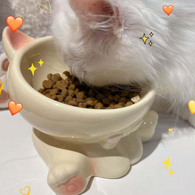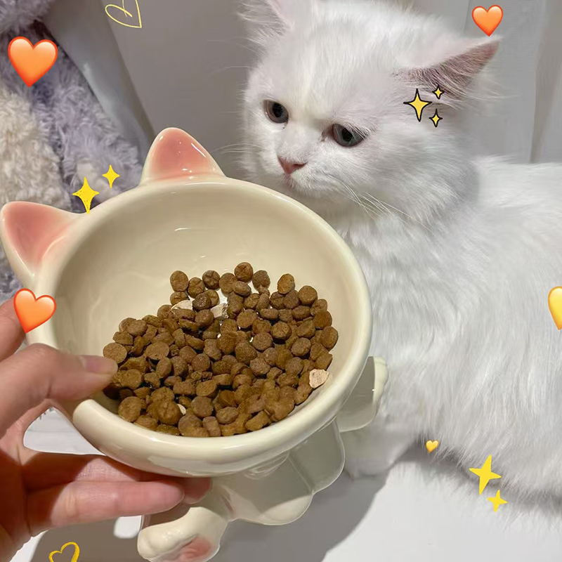 Elevated Ceramic Cat Bowl Slant Neck Protects Spine