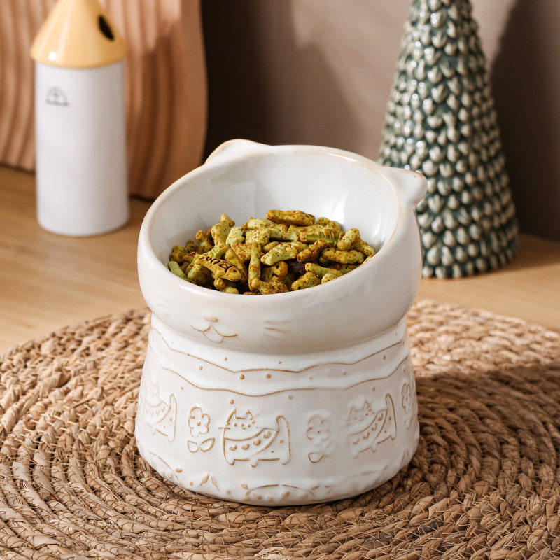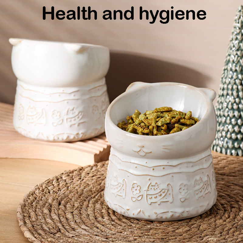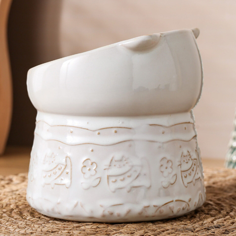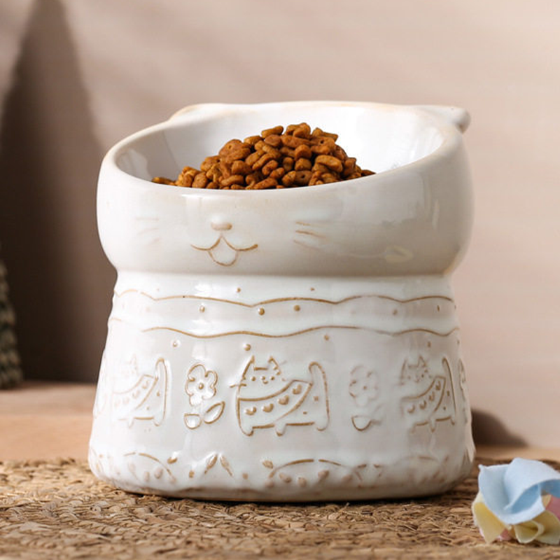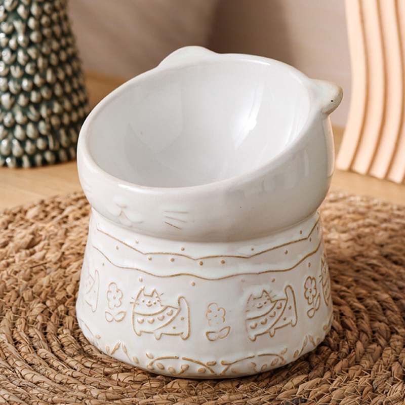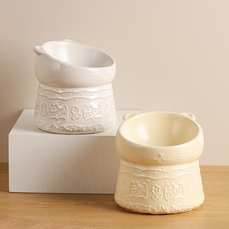 Elevated Slant Neck Ceramic Cat Bowl Neck Protecting