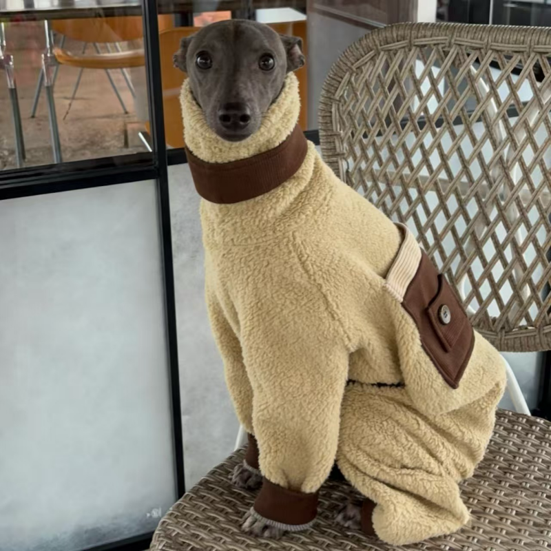 This fleece lined four leg onesies is designed for Italian Greyhound and Whippet dogs to stay warm and comfortable. Soft and insulating, it provides full body coverage while allowing flexible movement, making it ideal for daily wear, indoor lounging, and chilly outdoor walks.