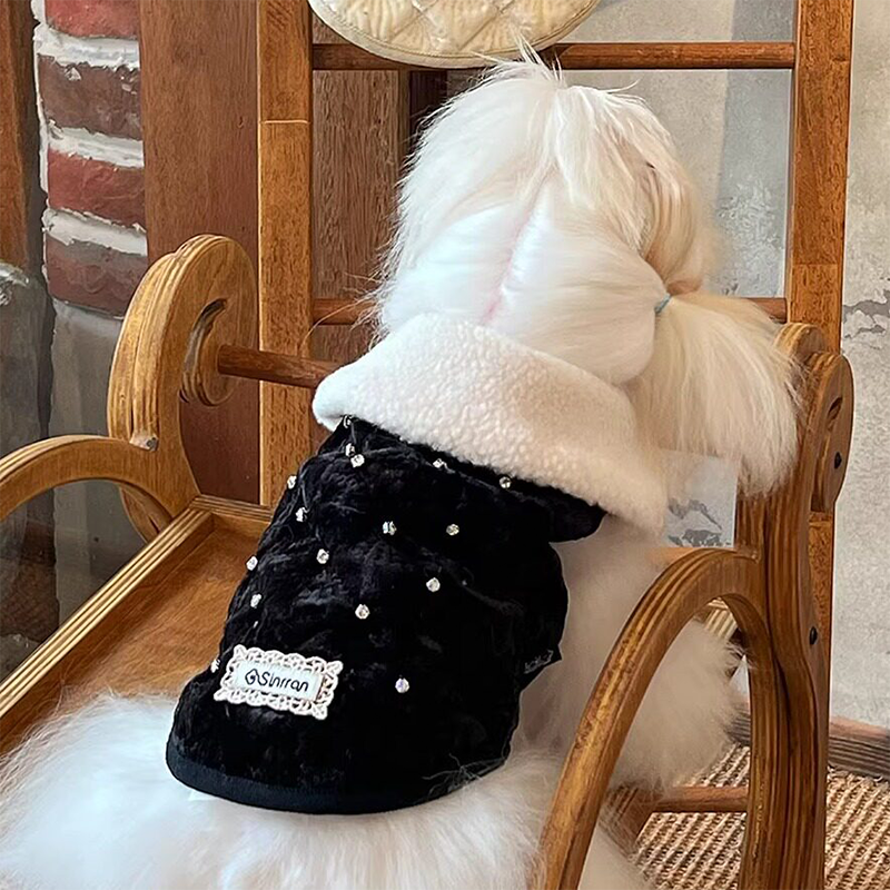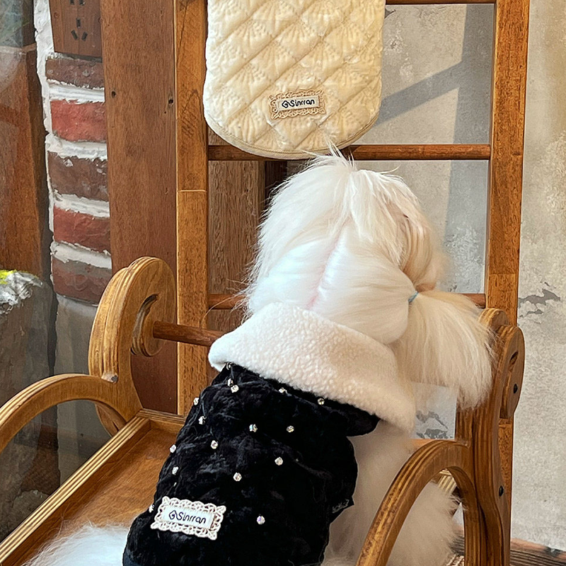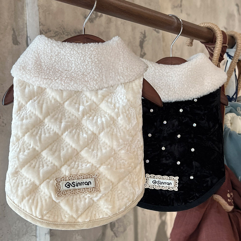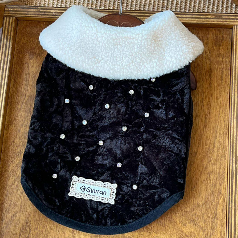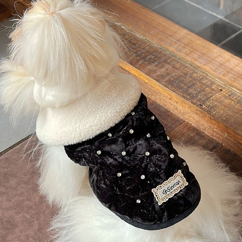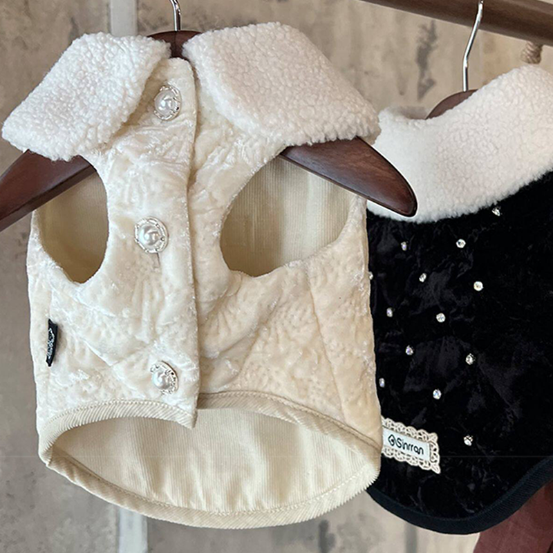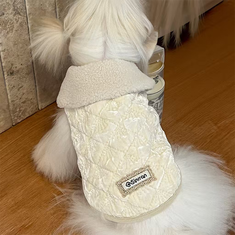 Designed for small medium dogs, this velvet warm vest jacket provides soft insulation and a smooth luxurious feel during cooler seasons. The plush velvet fabric offers gentle warmth while remaining comfortable for everyday wear. The sleeveless design allows easy movement through the chest and shoulders, making it ideal for layering over shirts or sweaters in fall and winter. Tailored for a secure yet flexible fit, this vest jacket keeps your dog cozy while adding an elegant seasonal touch.