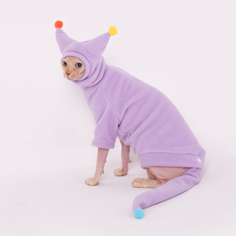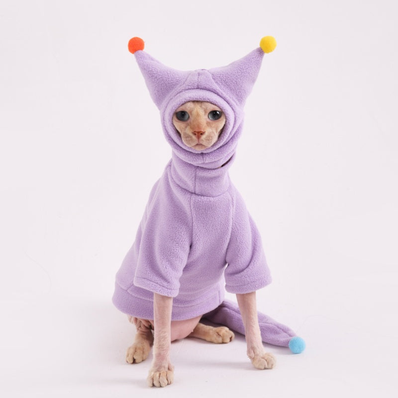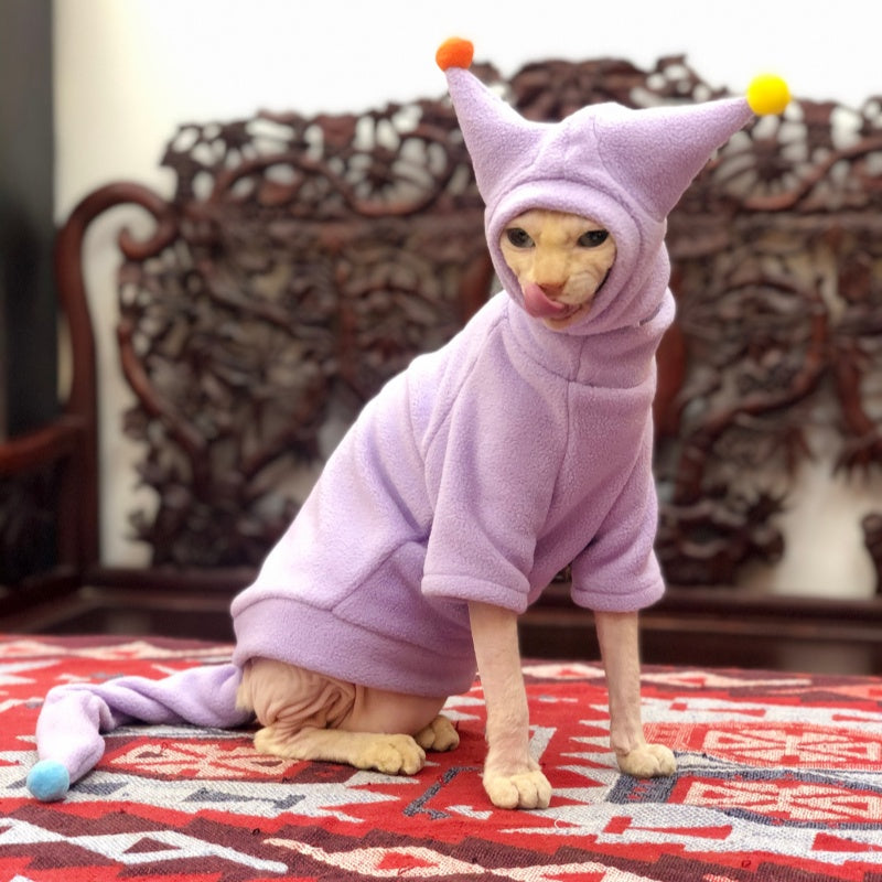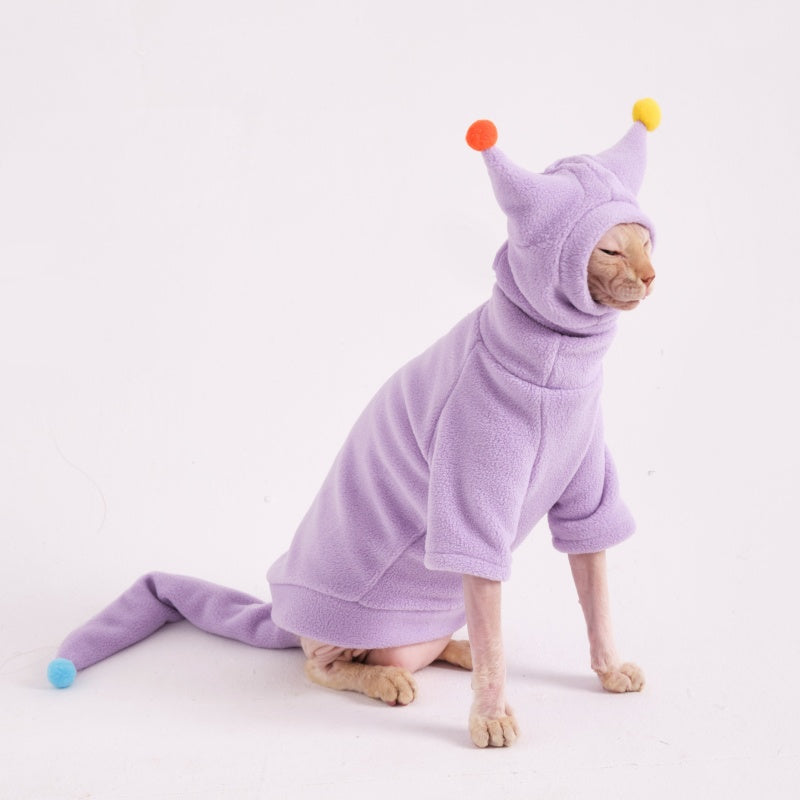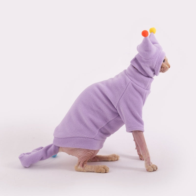 Fleece Warm Shirts with Hat & Tail Cover Sphynx Devon Rex Cat Clothes