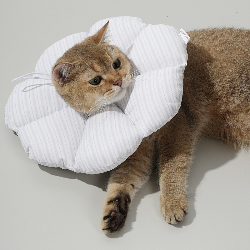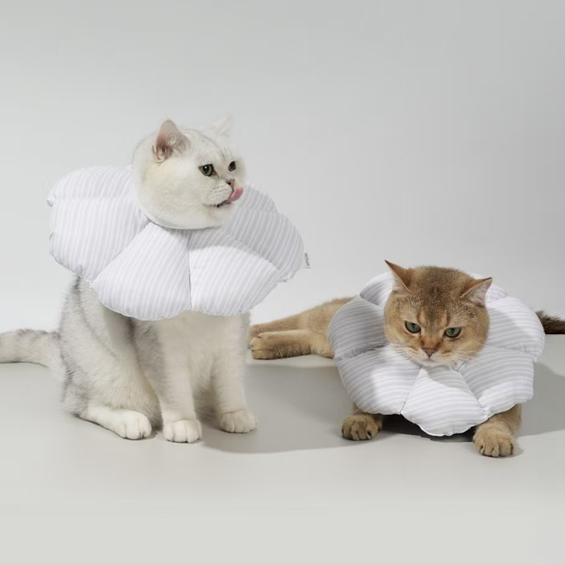 This flower shaped pet recovery cones is designed for both cats and dogs, offering a cute and comfortable solution to prevent licking and biting. The soft petal design provides gentle protection around the neck while adding a charming look. Adjustable straps allow a secure and customized fit for different sizes, ensuring it stays in place during daily use. Lightweight and comfortable, it does not restrict eating, drinking, or movement, making it ideal for recovery periods. Practical and adorable, this recovery cone helps protect your pet while keeping them relaxed and stylish.