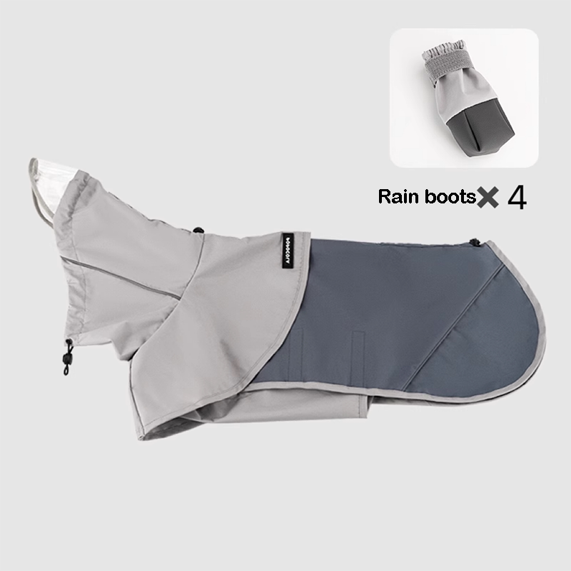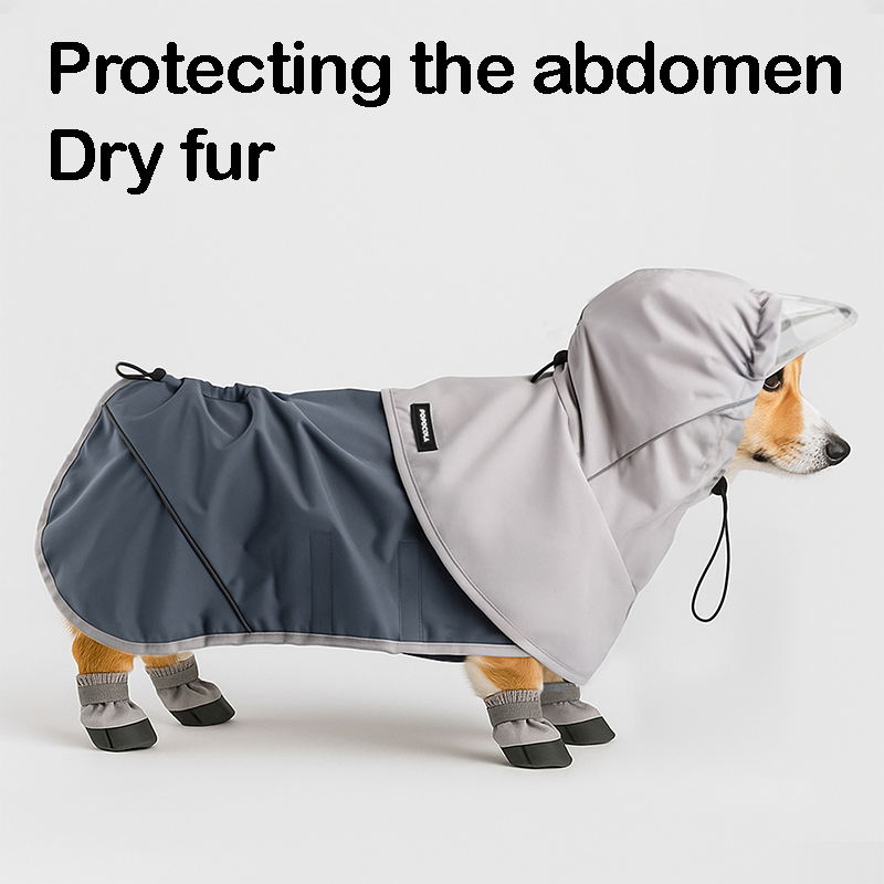 This full coverage waterproof dog raincoat is designed to keep your dog dry and protected during rainy weather. The four leg design with belly coverage helps shield your dog’s body, legs, and underside from water, mud, and dirt. Made with lightweight waterproof material, it allows comfortable movement while providing reliable protection outdoors. The cape style adds extra coverage and makes it easy to wear and remove. Practical and functional, this raincoat is perfect for daily walks and outdoor activities in wet conditions.