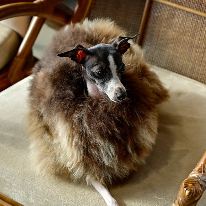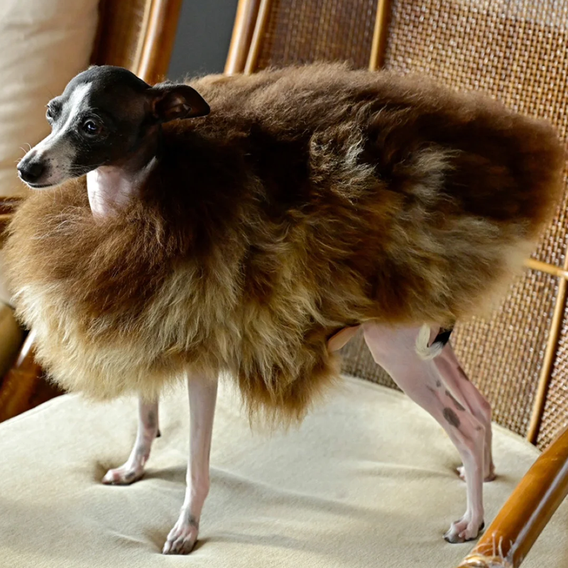 Genuine Leather Natural Wool Pattern Coat Italian Greyhound Dogs