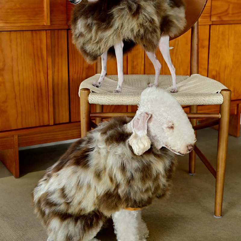 This genuine leather natural wool pattern coat is designed for Italian Greyhound dogs to stay warm and stylish in cold seasons. Made with real leather and naturally patterned wool, each piece features a unique texture and refined look while providing excellent insulation and comfortable wear, making it ideal for winter outings and special occasions.