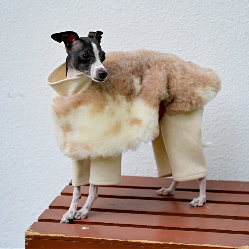Genuine Leather Wool Fur Coat Italian Greyhound Whippet Dogs