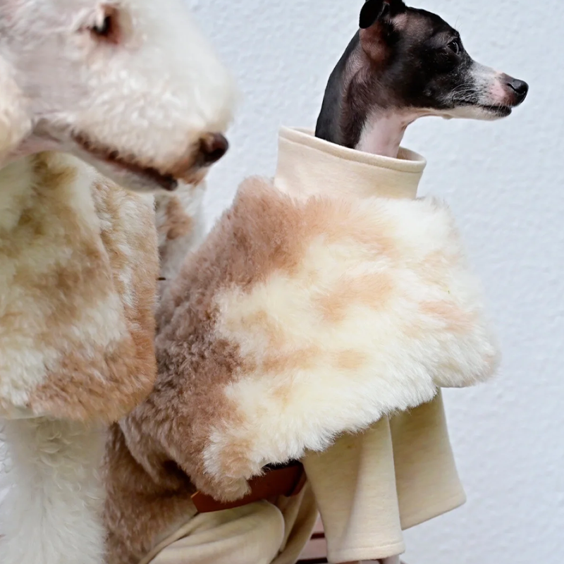 This genuine leather wool fur coat is designed for Italian Greyhound and Whippet dogs to stay warm and elegant in cold weather. Crafted with real leather and natural wool fur, it offers premium insulation, a soft luxurious feel, and a refined silhouette, making it suitable for winter outings and special occasions.