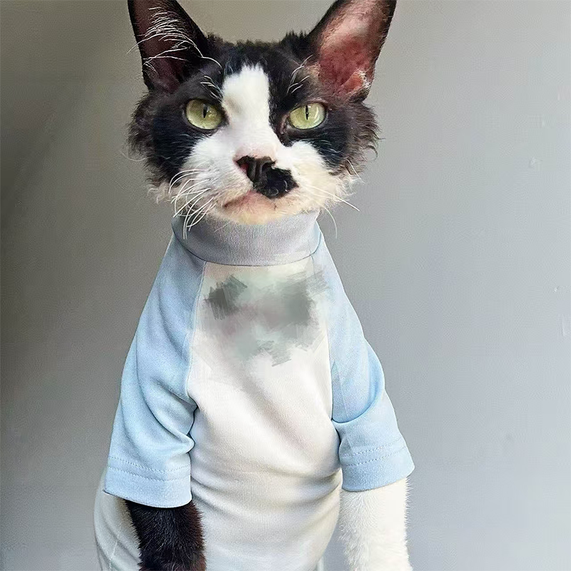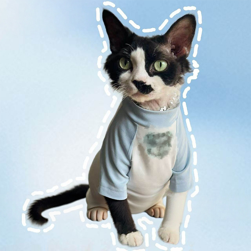 This vintage cotton base layer shirt is designed for Devon and Sphynx cats to stay comfortable during spring and autumn. Made from soft pure cotton fabric, it provides breathable warmth, a gentle touch on sensitive skin, and a snug fit, making it ideal for daily wear and indoor comfort.