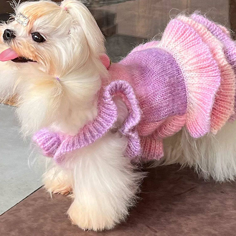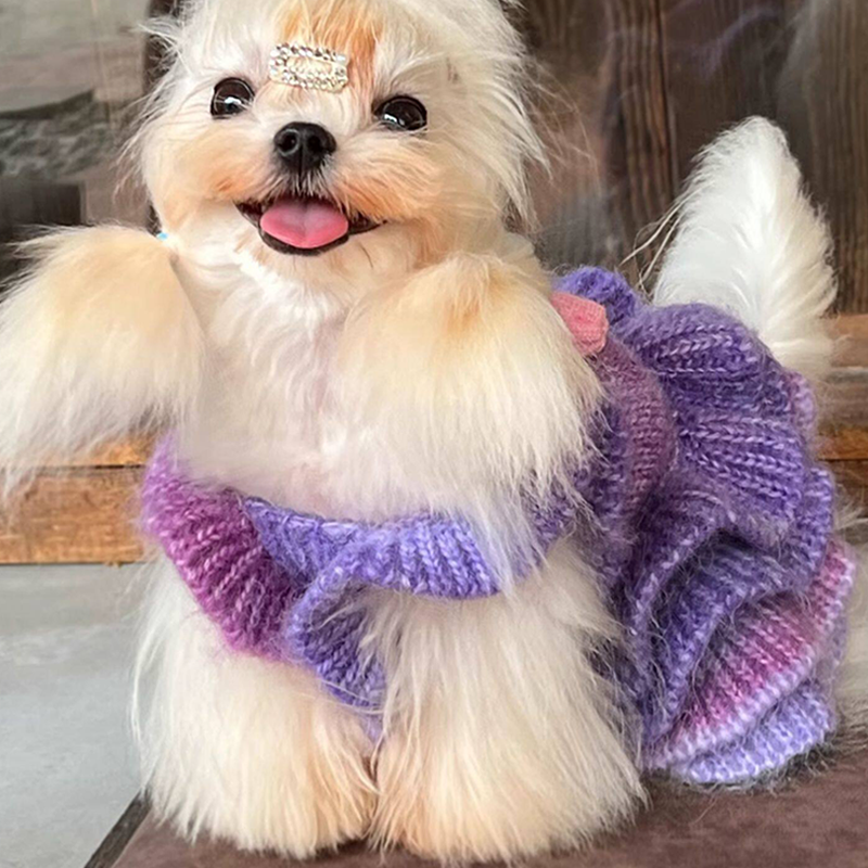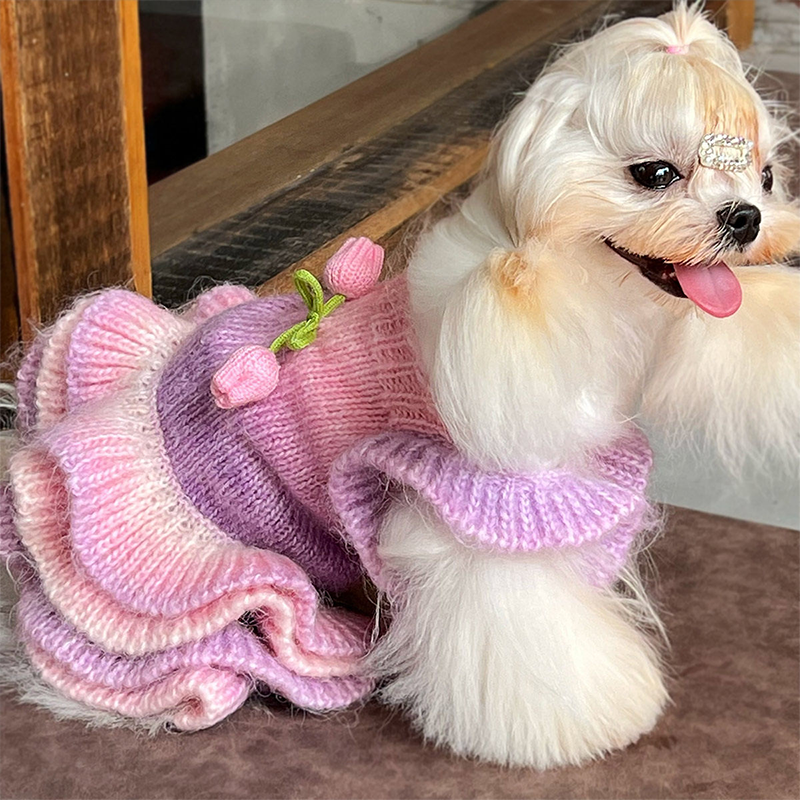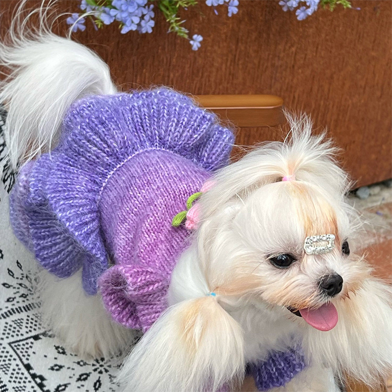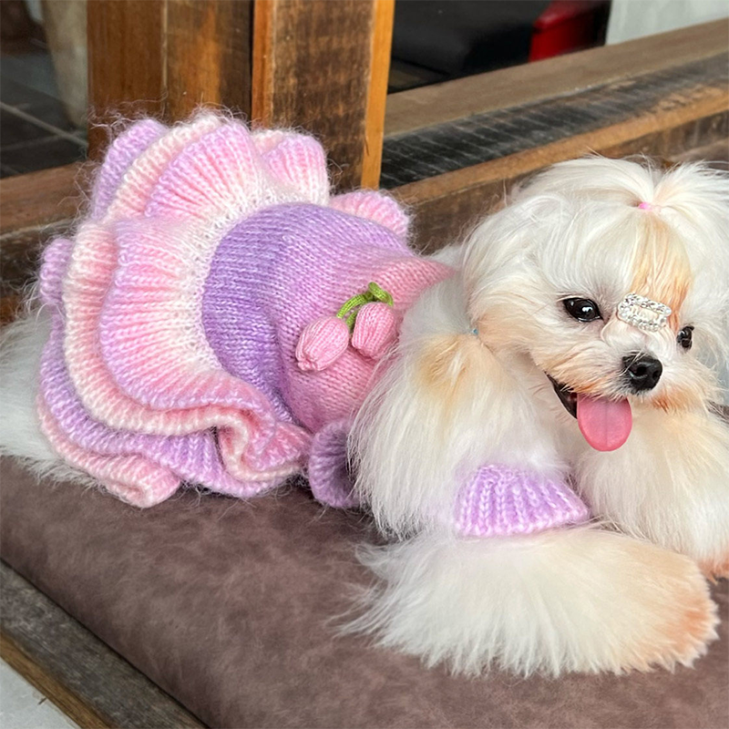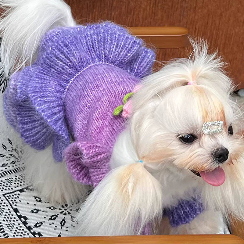 Designed for small medium dogs, this knitted soft warm dress provides cozy comfort and gentle insulation during cooler seasons. The knit fabric feels soft against the skin while offering breathable warmth for everyday wear. The tailored fit allows natural movement without restriction, making it suitable for indoor lounging, casual outings, or seasonal photos. With its simple and charming silhouette, this dress keeps your dog comfortable while adding a warm and stylish touch for fall and winter.